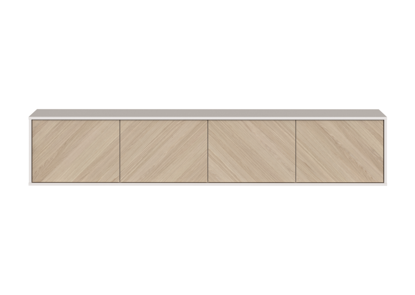 Тумба Fjord 4 двери подвесная Высота: 39,8 см Ширина: 206,4 см Глубина: 40,5 см Каркас: массива бука Корпус: МДФ под эмалью Фасады: тонированный шпон дуба