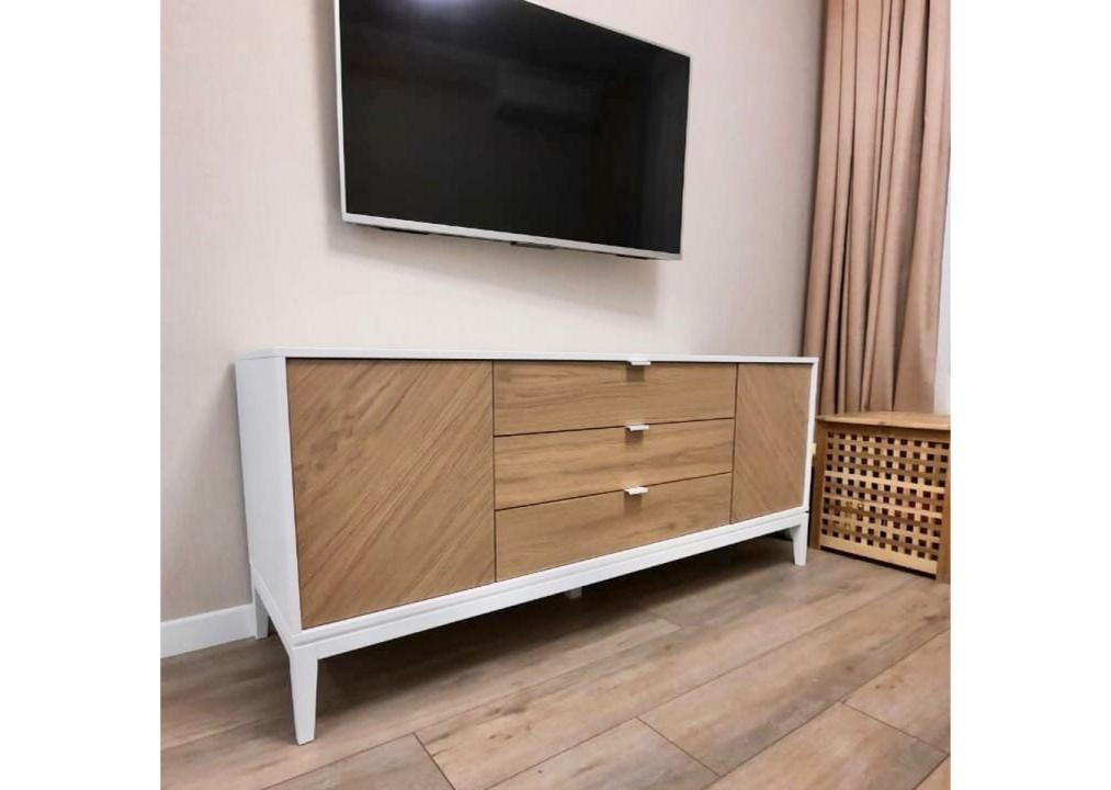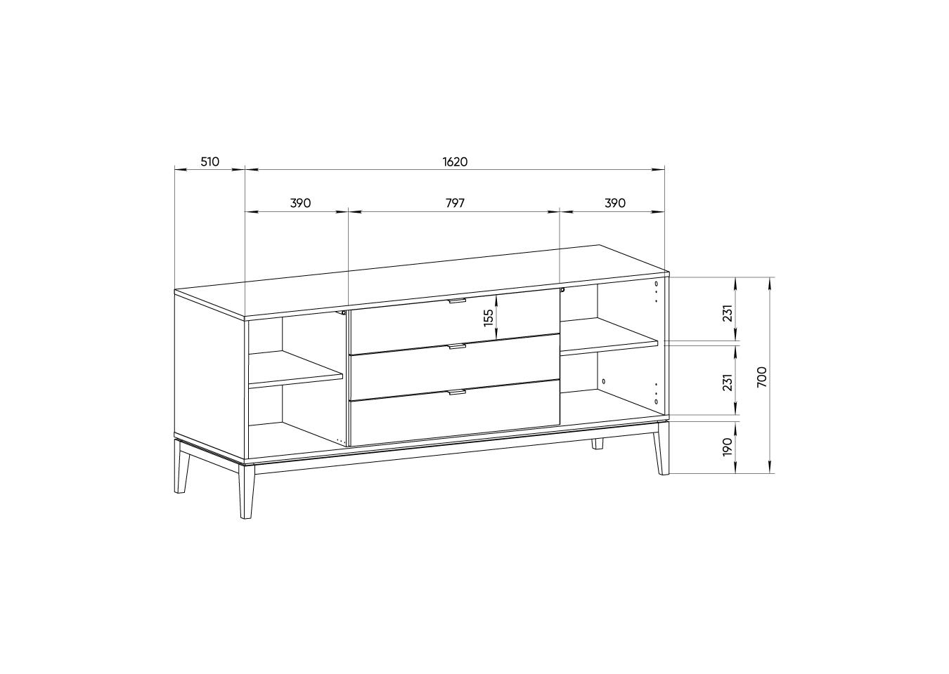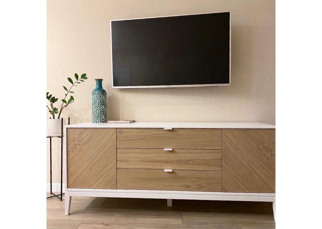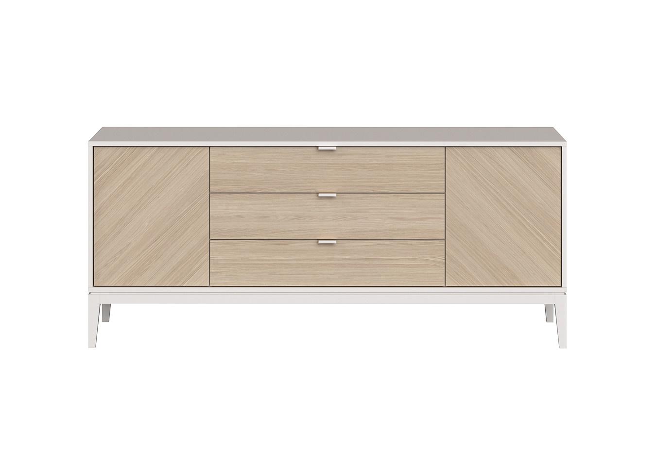 Тумба Fjord 2 двери 3 ящика Высота: 70 см Ширина: 162 см Глубина: 51 см Основание: массива бука Корпус: МДФ под эмалью Фасады: шпон дуба Ящики на бесшумных направляющих с доводчиками