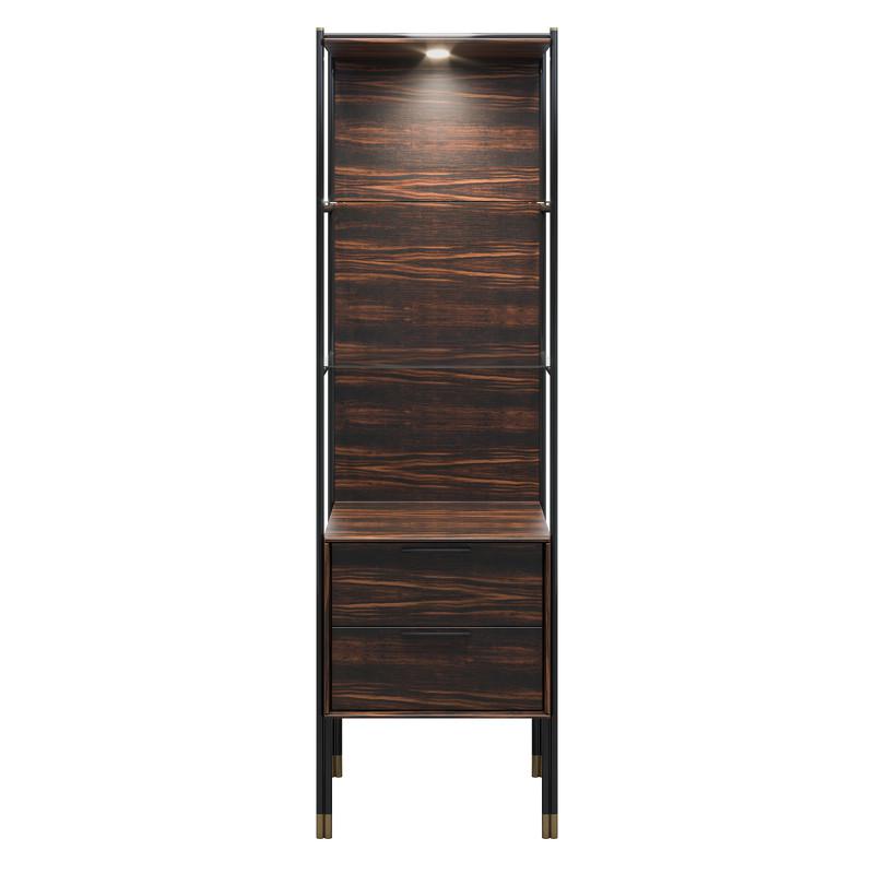Витрина на высоких ножках от бренда Mod Interiors изготовлена из высококачественного шпонированного МДФ высокой плотности. Металлические ножки с латунными колпачками и металлические ручки подчеркивают изысканность модели. Витрина оснащена двумя выдвижными ящиками, двумя стеклянными полками и подсветкой. Все ящики снабжены направляющими системы soft-close. Уникальная система последнего поколения добавляет невероятную плавность открывания/закрывания и высокую динамическую нагрузку. Цена указана за одну витрину.