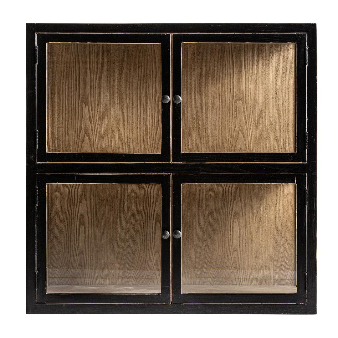 Модульная витрина HEMYE, черный/натуральный цвет, колониальный стиль. Изготовлен из переработанной сосновой древесины в сочетании с хрусталем.
