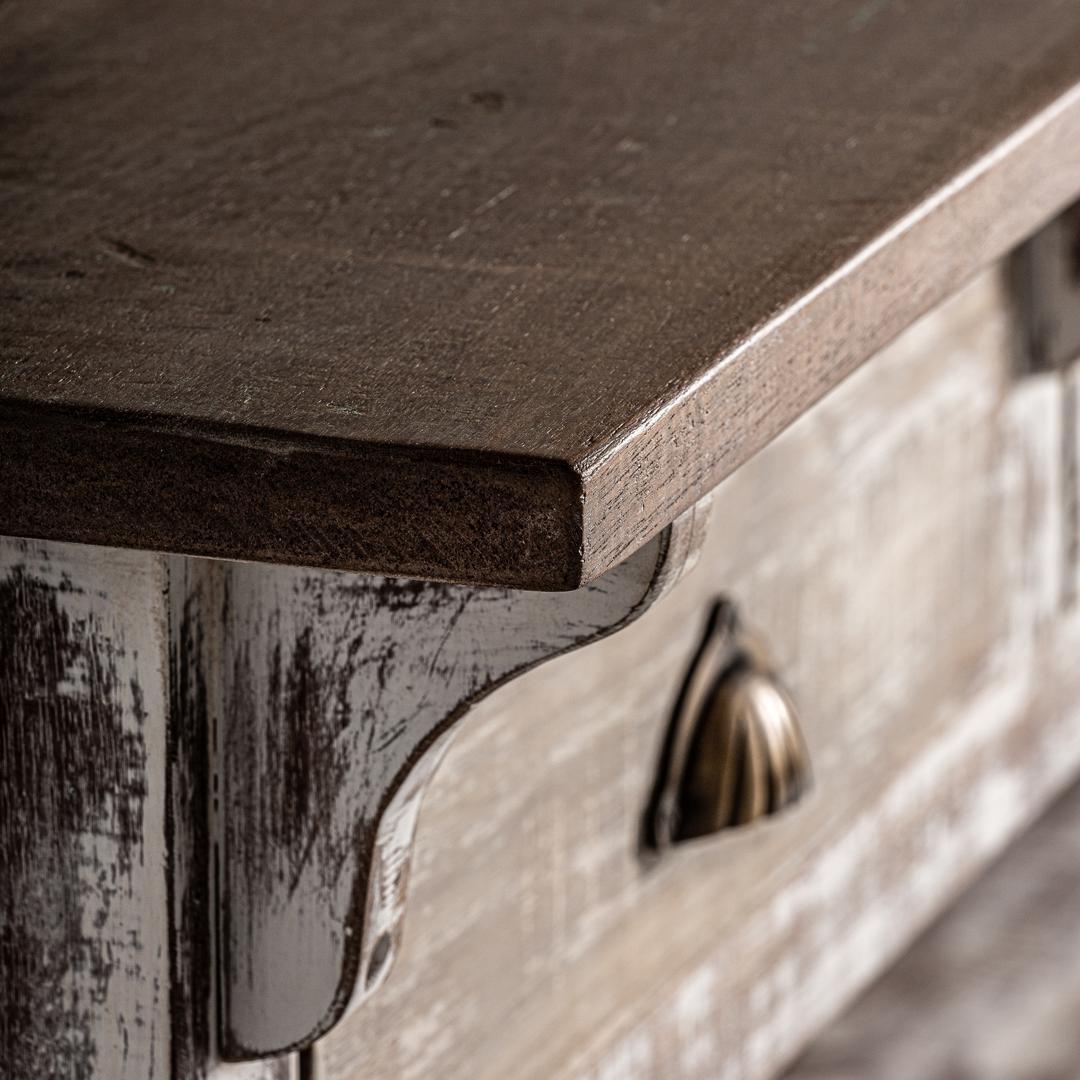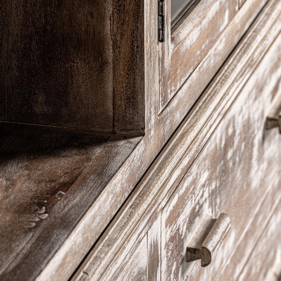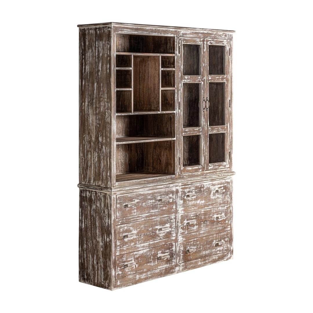 Витрина Malung, состаренный белый/коричневый цвет, деревенский стиль. Изготовлен из дерева манго в сочетании со стеклом. Штабелируемый продукт.