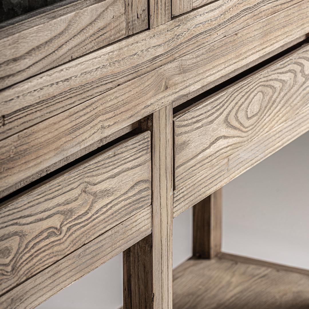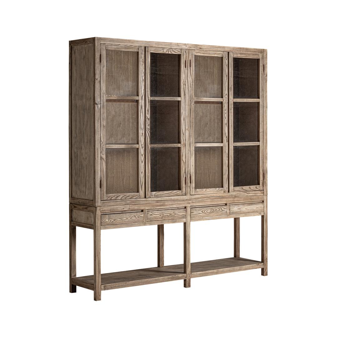 Шкаф-витрина Mawgan от VICAL home выделяется своим вместительным пространством для хранения и дизайном из натурального вяза. Размером 200 x 45 x 225 см, он идеально подходит в качестве двухстороннего шкафа-витрины с деревянным основанием, предлагая хранение и стиль в одном предмете мебели. Благодаря изысканной эстетике он адаптируется к любому пространству, добавляя нотку природы и элегантности. Его можно разобрать.