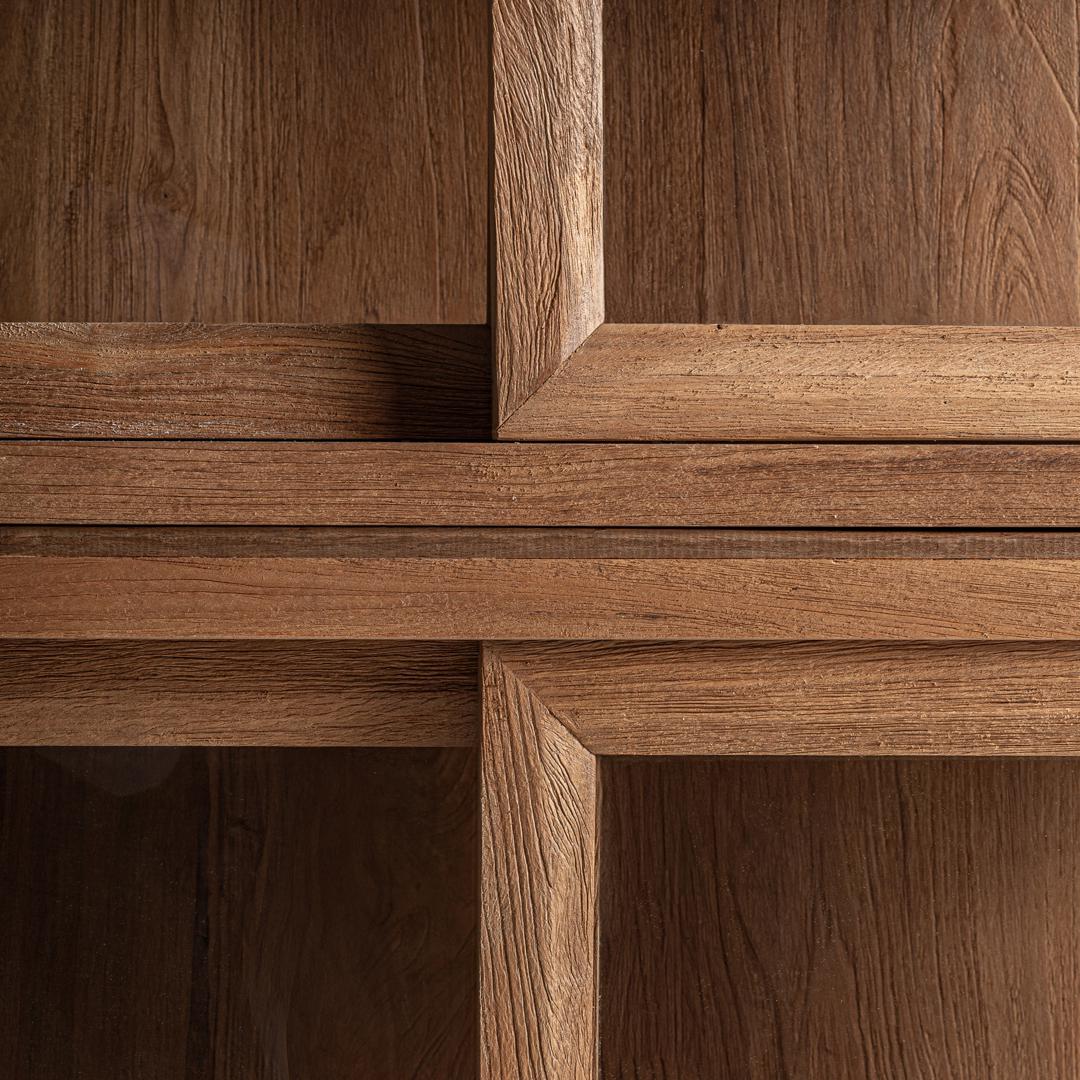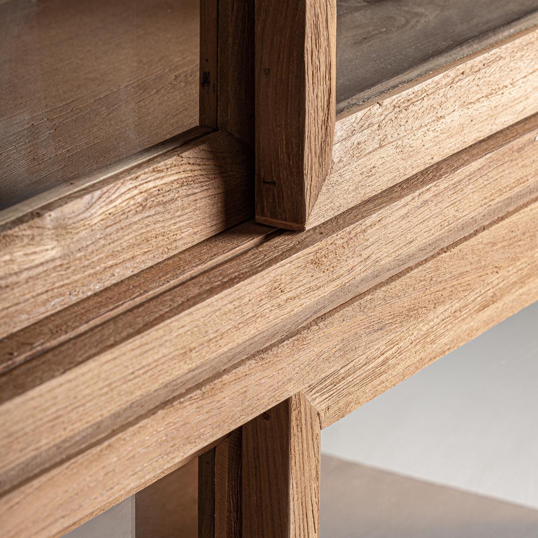 Витрина, изготовленная из тикового дерева коричневого цвета. Ширина: 150 см, Глубина: 40 см, Высота: 220 см