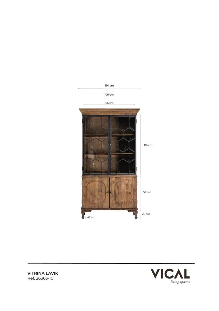 Витрина Lavik от VICAL home — сочетание традиций и современного дизайна. Этот предмет из серии LAVIK изготовлен из переработанной сосновой древесины с железными деталями, создавая поразительный контраст между черным и натуральным. Благодаря старинному стилю и ремесленному производству каждая традиционная витрина имеет уникальную маркировку и вариации, что делает ее уникальным произведением искусства. Его размеры 124x47x225 см делают его подходящим для больших помещений, а искусный дизайн гарантирует уникальность каждого предмета. Съемный.
