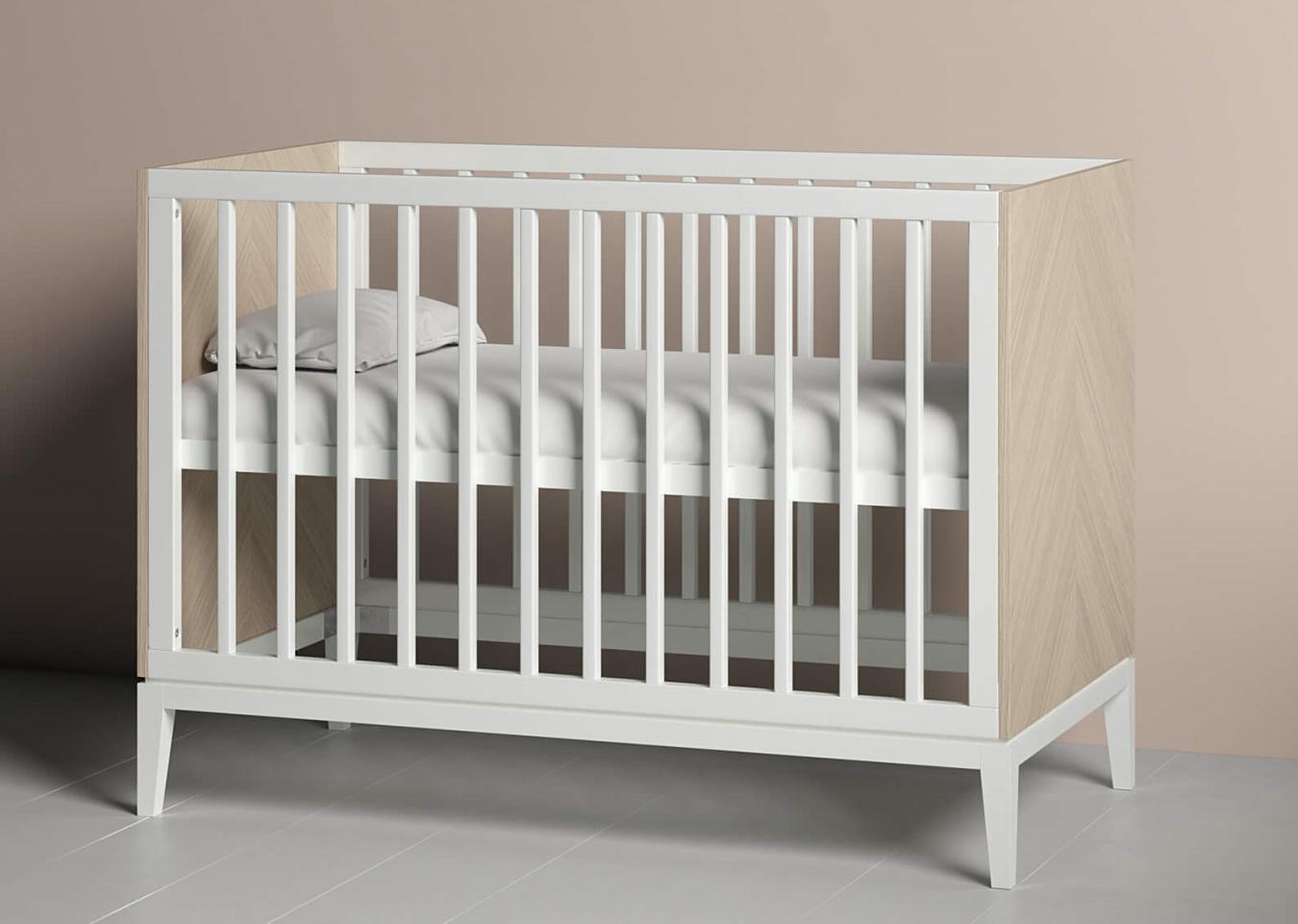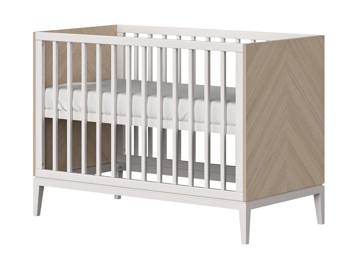 Кроватка из коллекции Fjord для деток от 0 до 3 лет имеет стандартный размер спального места 60*120 см У кроватки 3 положения уровня дна Высота: 89 см Ширина: 66 см Длина: 124 см Материал: массив бука, шпон дуба