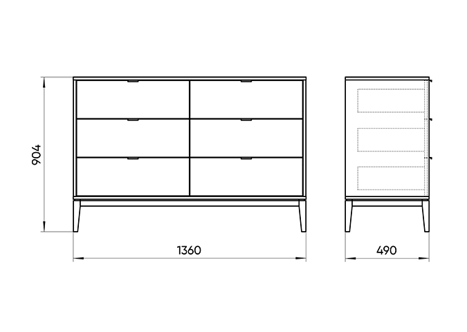 Комод Fjord 6 ящиков Высота: 90,4 см Ширина: 136 см Глубина: 49 см Основание: массива бука Корпус: МДФ под эмалью Фасады: шпон дуба Ящики на бесшумных направляющих с доводчиками