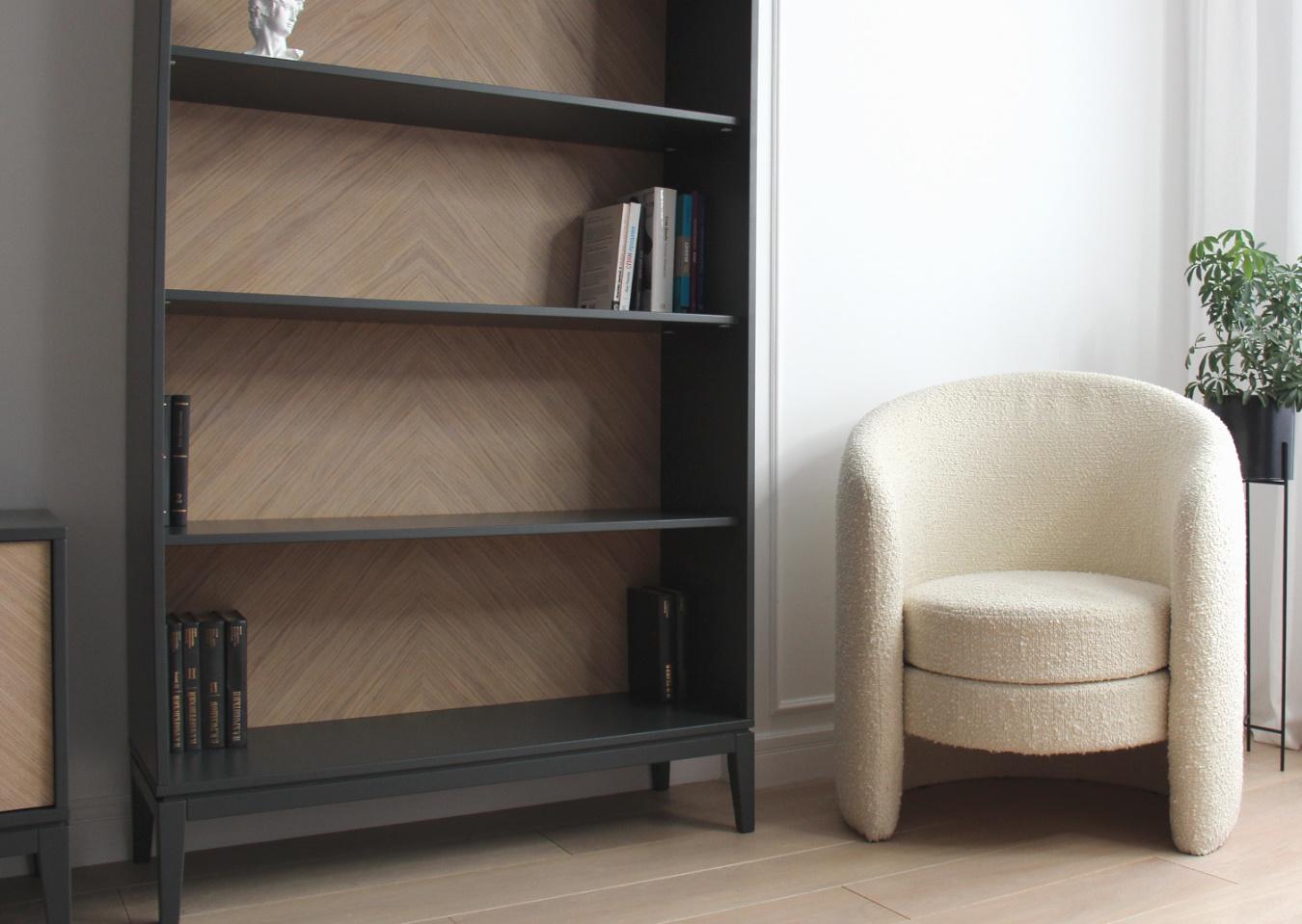 Стеллаж Fjord размер L Высота: 200 см Ширина: 100 см Глубина: 36 см Основание: массива бука Корпус: МДФ под эмалью Фасады: шпон дуба