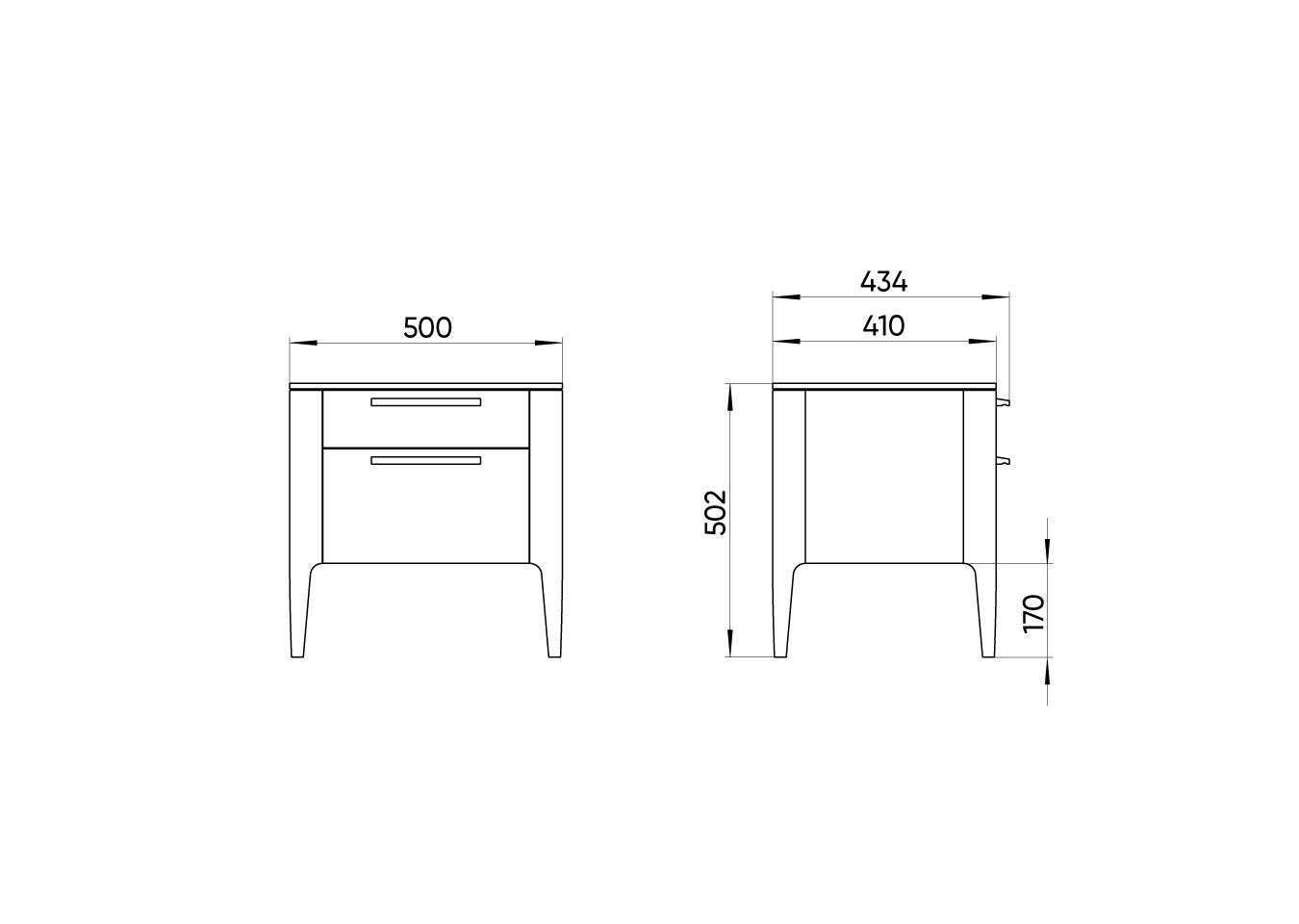 Высота: 50 см Ширина: 50 см Глубина: 41 см При производстве используется шпон натурального дуба, покрытие эмаль RAL 7043 Материал: массив дуба, натуральный шпон дуба, МДФ