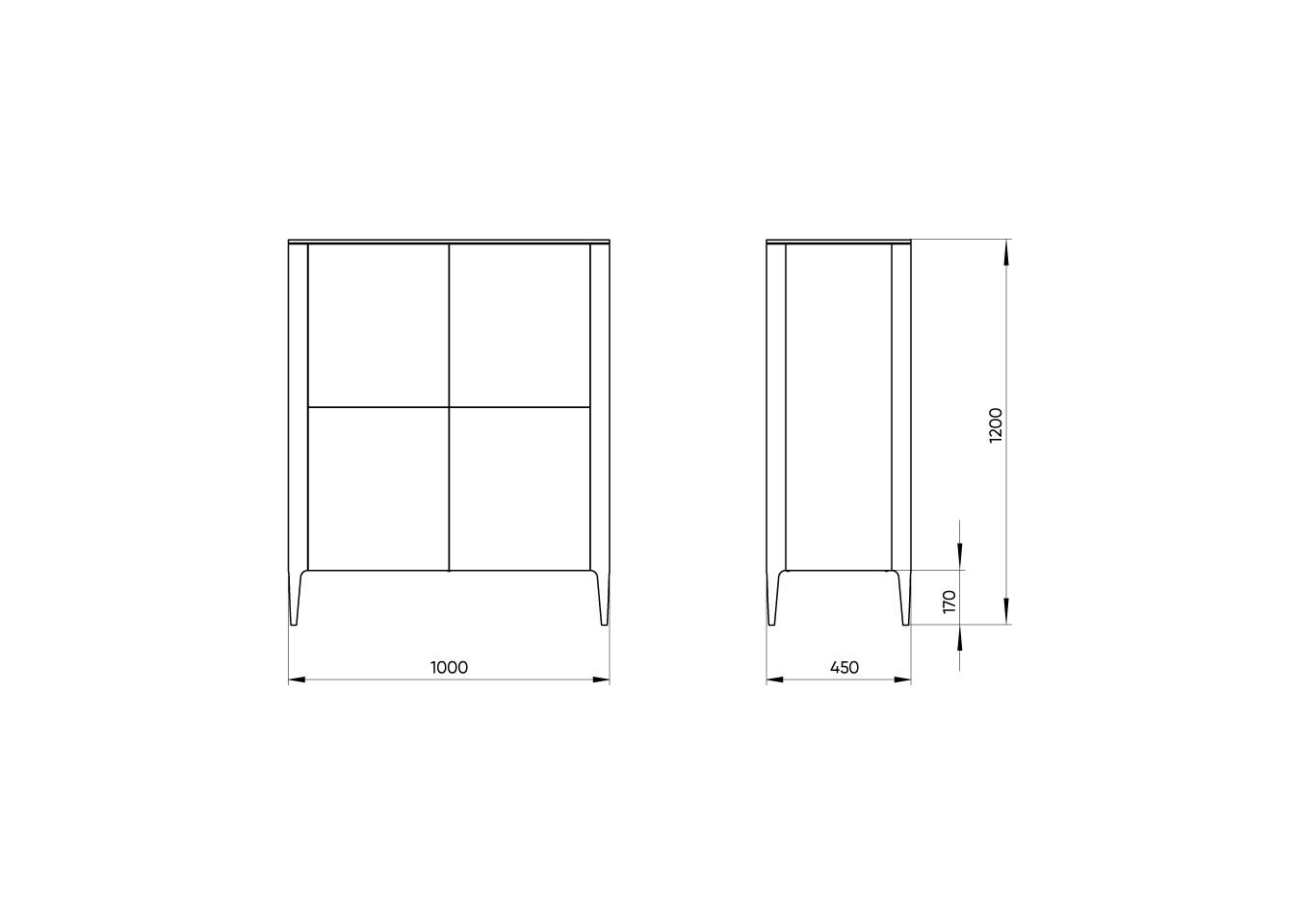 Высота: 120 см Ширина: 100 см Глубина: 45 см При производстве используется шпон натурального дуба, покрытие эмаль NCS S 0804-Y30R Материал: массив дуба, натуральный шпон дуба, МДФ