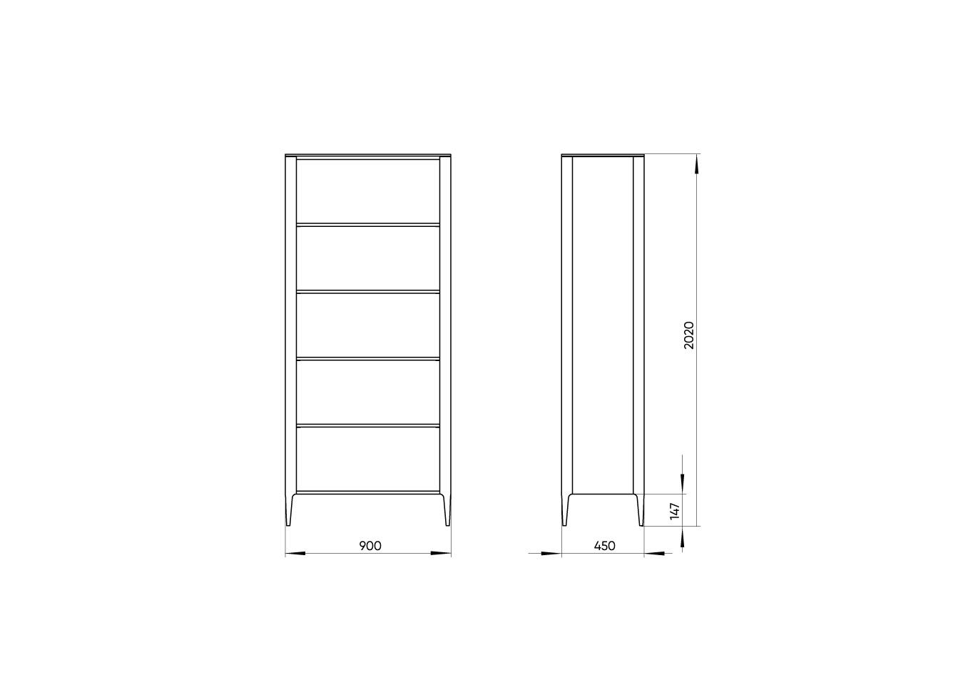 Высота: 200 см Ширина: 90 см Глубина: 45 см При производстве используется шпон натурального дуба, покрытие эмаль NCS S 0804-Y30R Материал: массив дуба, натуральный шпон дуба, МДФ