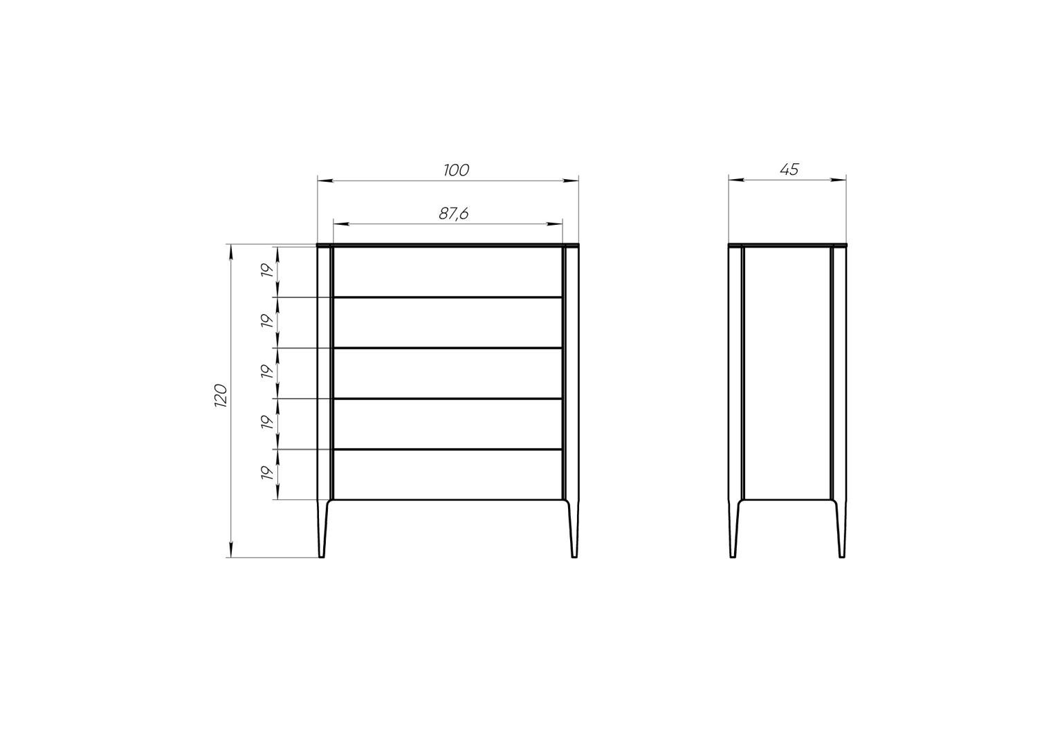 Мебель Ellipsefurniture Комод Type 5 ящиков ширина 100 см (темно-серый) арт. TY010306380101
