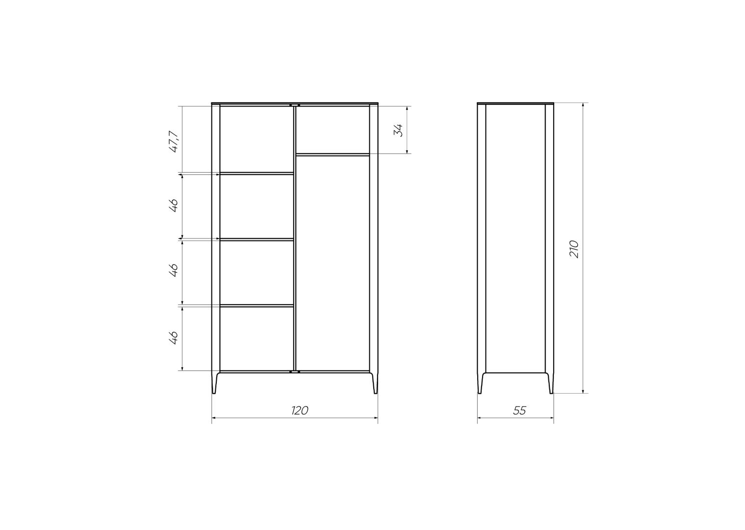 Высота: 210 см Ширина: 120 см Глубина: 55 см Покрытие эмаль, RAL 7035 Материал: дуб, МДФ, внутри ЛДСП