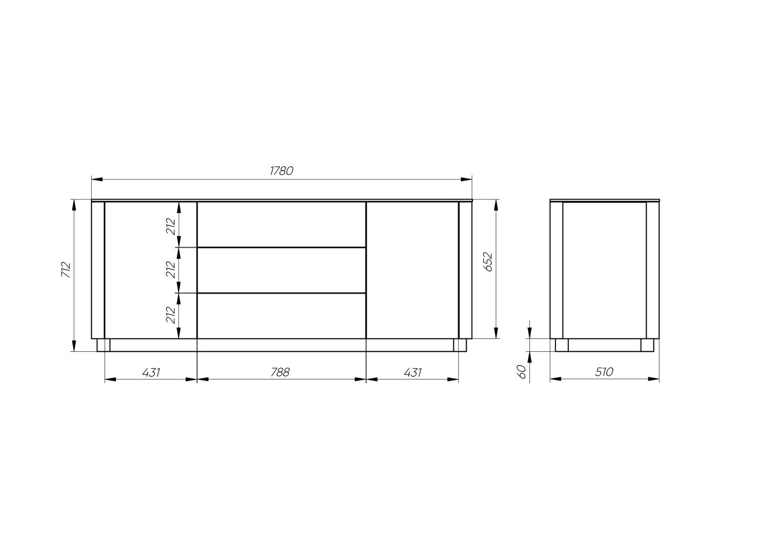 Высота: 71 см Ширина:178 см Глубина: 51 см Покрытие эмаль, NCS S 0804-Y30R Материал: дуб, МДФ, внутри ЛДСП