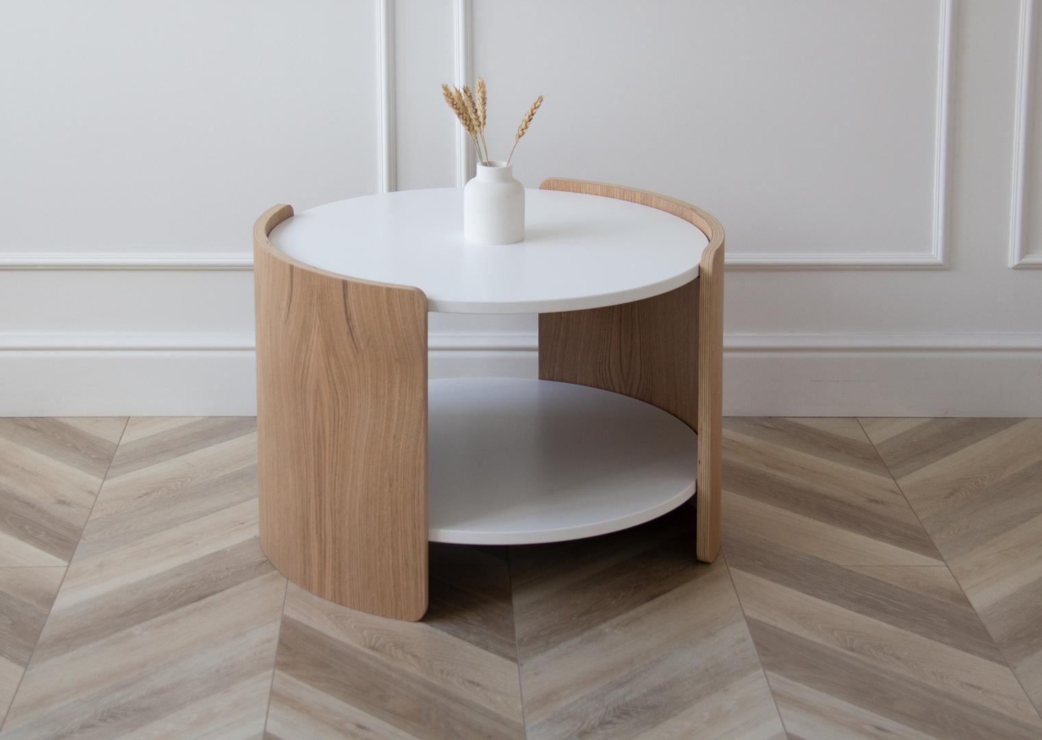 Мебель Ellipsefurniture Столик Lagom D 65 см высота 45 см (белый, натуральный дуб) арт. LG010301580201