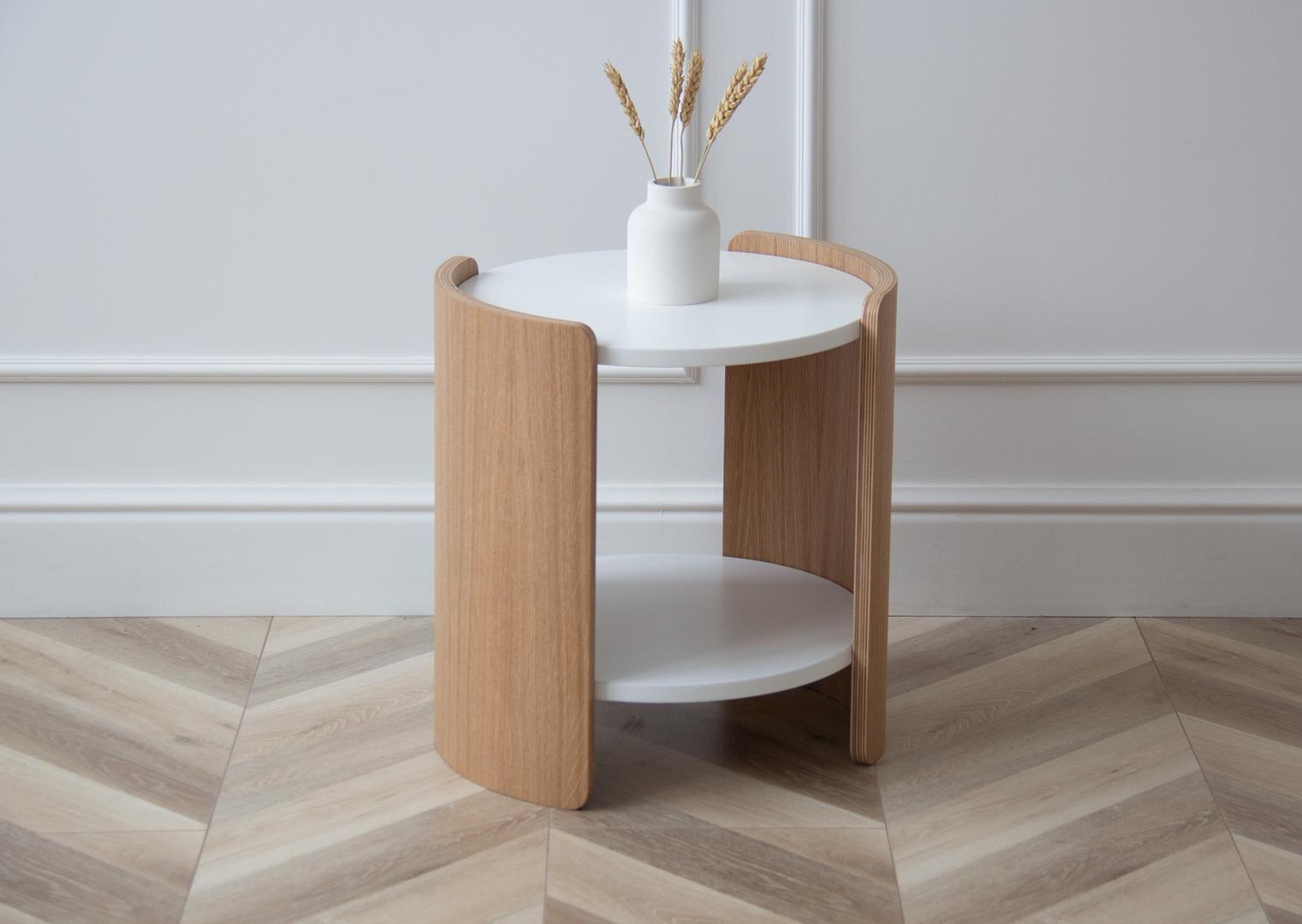 Мебель Ellipsefurniture Столик Lagom D 43 см высота 45 см (белый, натуральный дуб) арт. LG010301560201