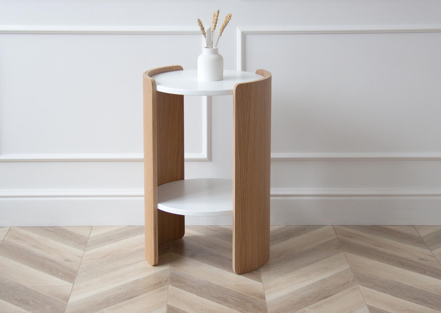 Мебель Ellipsefurniture Столик Lagom D 43 см высота 64 см (белый, натуральный дуб) арт. LG010301570201