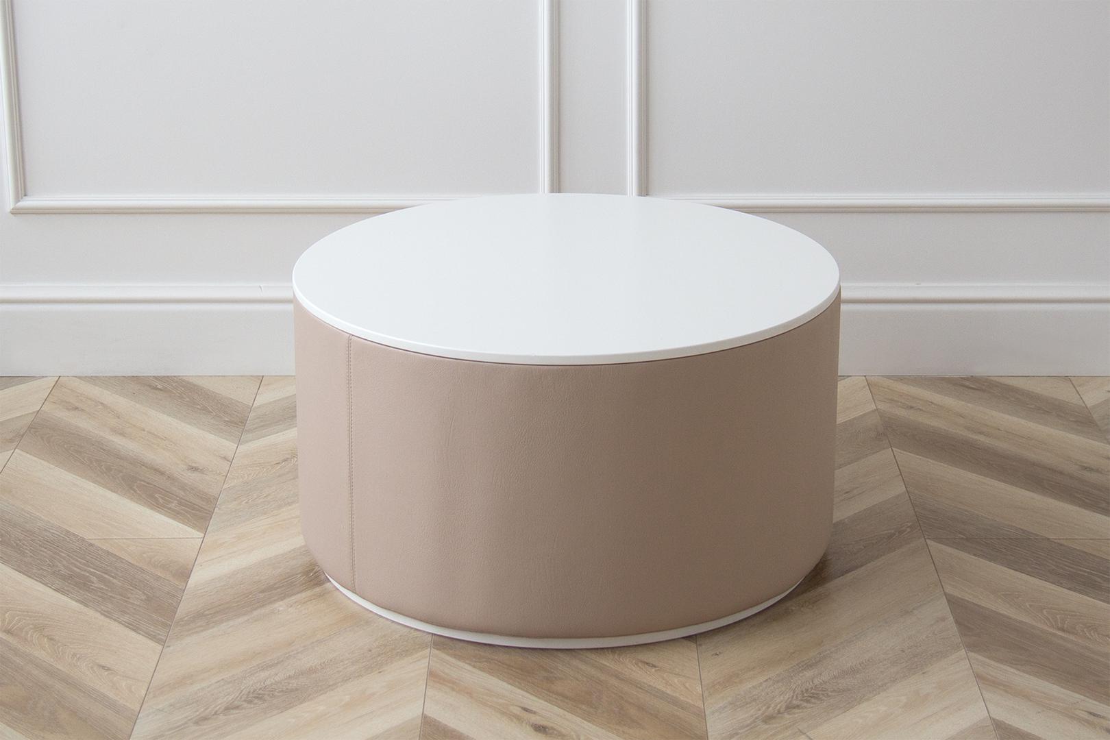 Оригинальные столики Sun станут ярким акцентом любой комнаты Можно организовать уютную зону в гостиной Высота: 35 см Диаметр столешницы: 66 см Основание: береза, экокожа Столешница: МДФ, эмаль