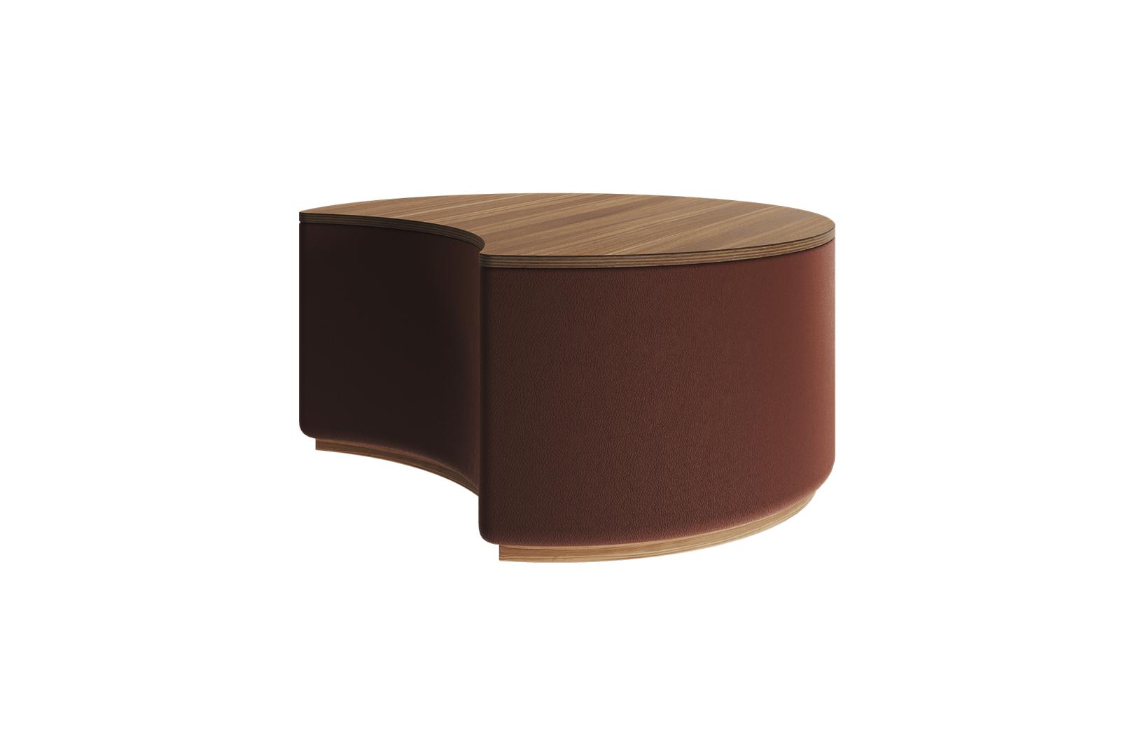 Оригинальные столики Sun станут ярким акцентом любой комнаты Можно организовать уютную зону в гостиной Высота: 30 см Диаметр столешницы: 66 см Основание: береза, экокожа Столешница: шпон ореха