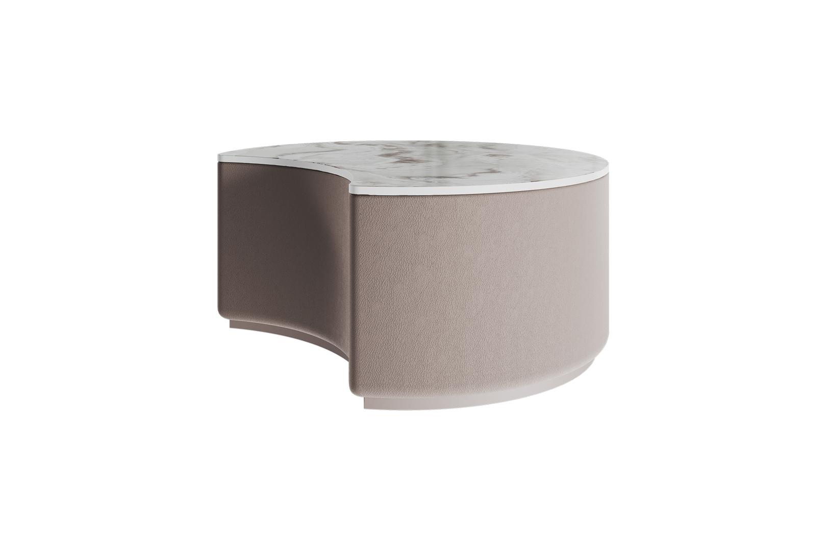 Оригинальные столики Sun станут ярким акцентом любой комнаты Можно организовать уютную зону в гостиной Высота: 30 см Диаметр столешницы: 66 см Основание: береза, экокожа Столешница: акриловый камень Staron Supreme Ocean View 2