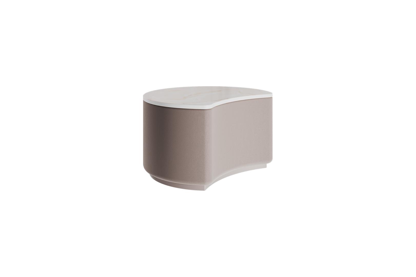 Оригинальные столики Sun станут ярким акцентом любой комнаты Можно организовать уютную зону в гостиной Высота: 25 см Диаметр столешницы: 47 см Основание: береза, экокожа Столешница: акриловый камень Staron Supreme Latte Cream (VL343)
