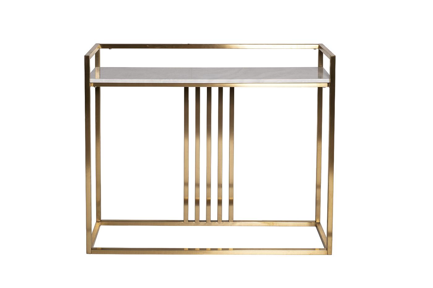 description-full - Дизайнерская металлическая консоль со столешницей из искусственного мрамора станет изысканным дополнением к интерьеру гостиной, спальни или прихожей. Благодаря эффектному дизайну и позолоченному корпусу эта консоль под мрамор станет не только украшением пространства, но и превосходным подарком тому, кто любит интересные вещи в стиле ар-деко. Качество исполнения мебели из нашего каталога безупречное. Красивая эффектная консоль в современном стиле прочная и устойчивая за счет основания из металла. При этом она визуально легкая и не перегружает интерьер. Толщина столешницы - 15-18мм, высота от пола - 75см. Превосходно сочетается с другой мебелью в стилистике ар-деко, которую вы найдете в каталоге Garda Decor.