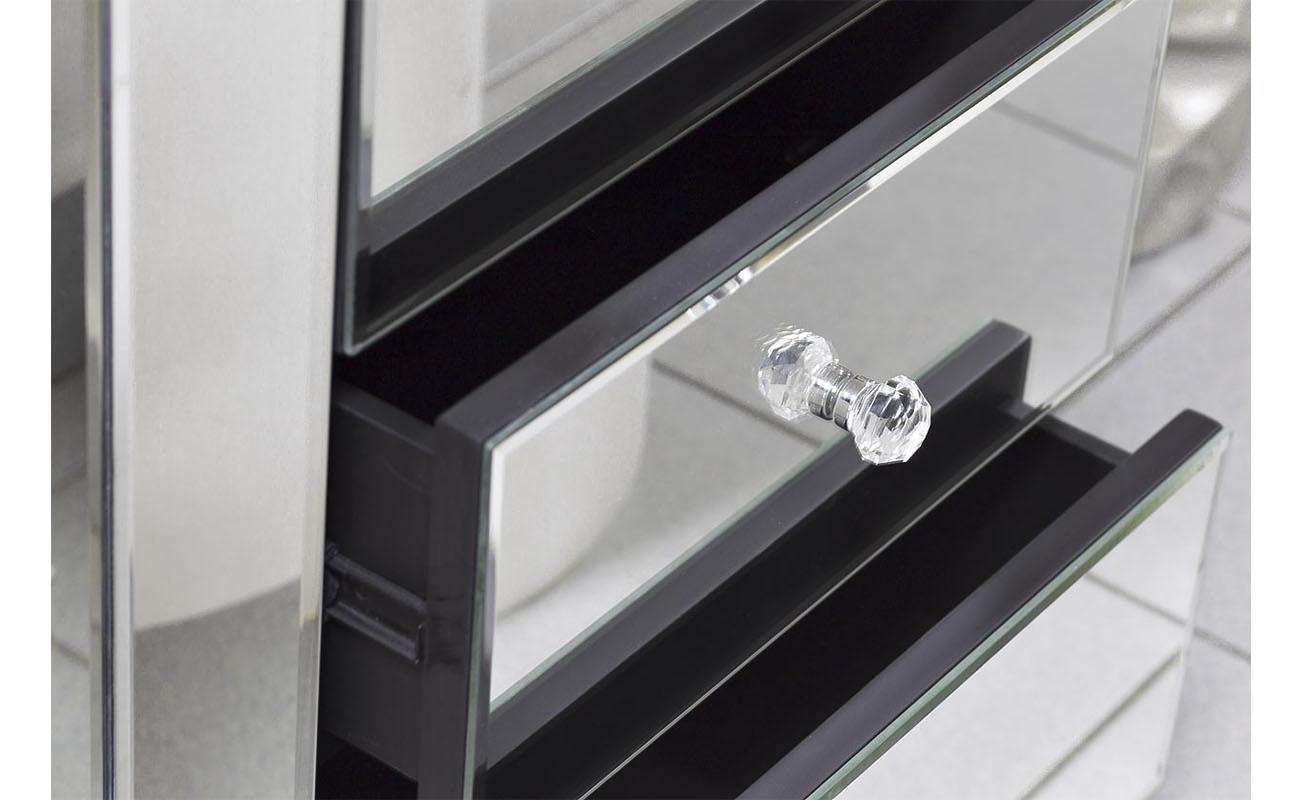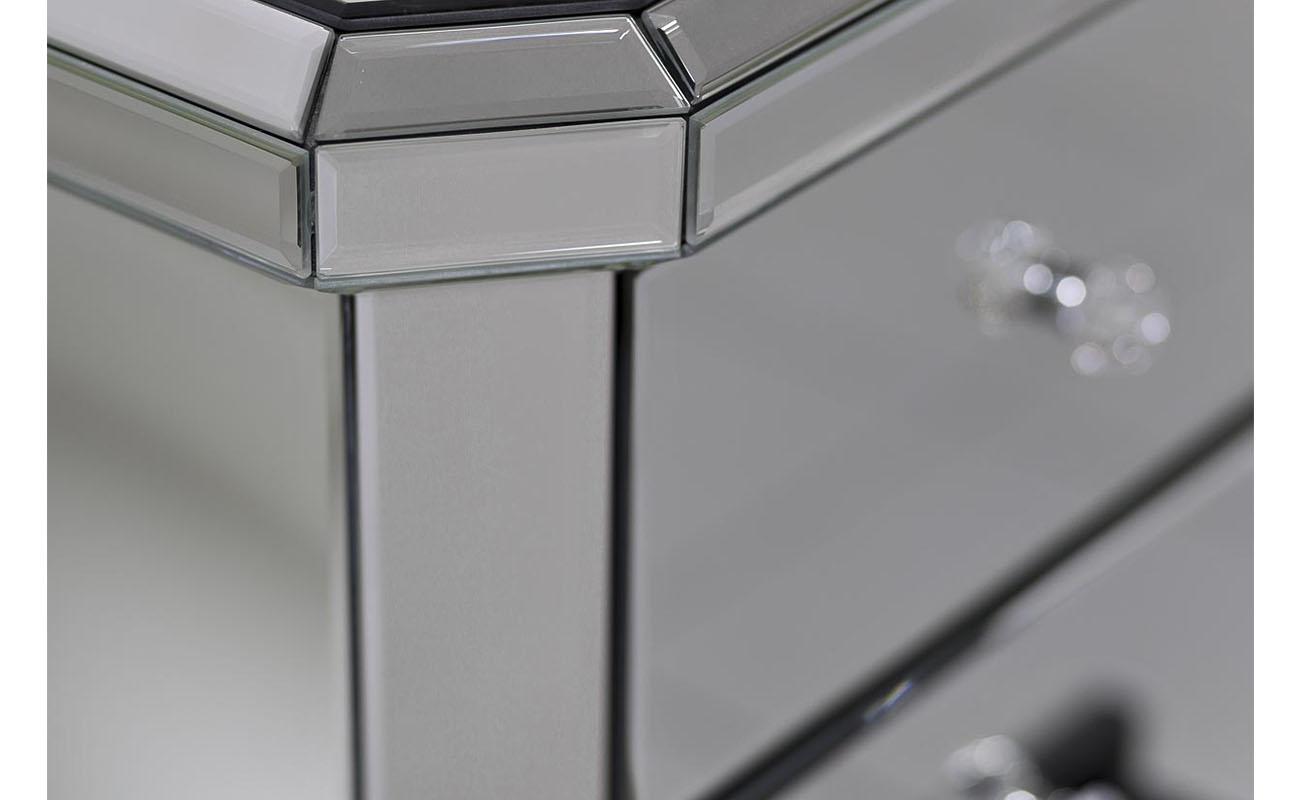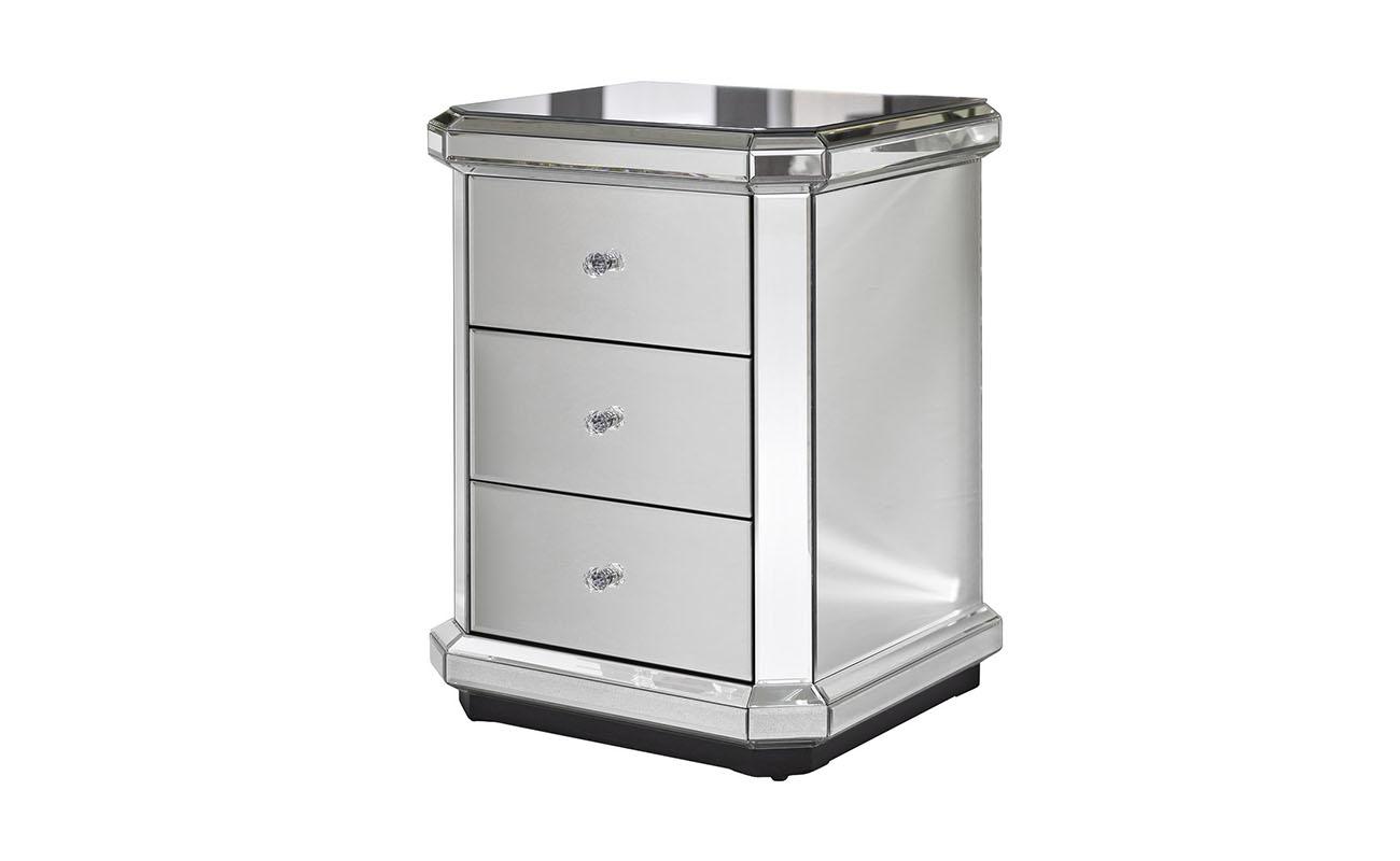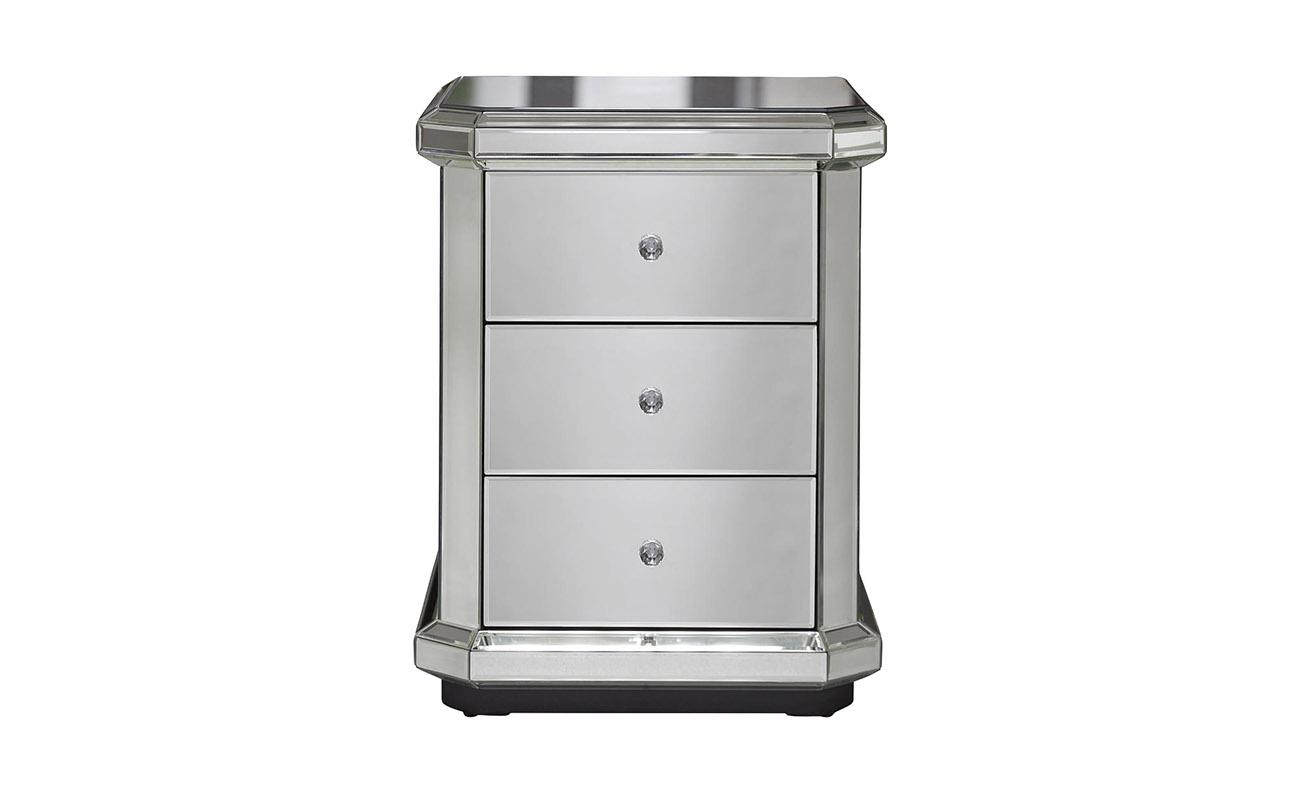 description-full - Сдержанная по форме, но эффектная в исполнении зеркальная тумбочка — выбор покупателей с воображением и художественным вкусом. Отражающая поверхность взаимодействует с окружающими предметами, создавая необычный акцент в интерьере. Три вместительных ящика предназначены для хранения самых разных вещей: от косметики до белья. На фото зеркальная тумбочка смотрится просто изумительно, но в реальности она выглядит еще роскошнее. Красивые хрустальные ручки добавляют изысканности и шарма. Тумба прекрасно сочетается практически со всеми видами мебели и декора, а также различными вариантами текстиля.