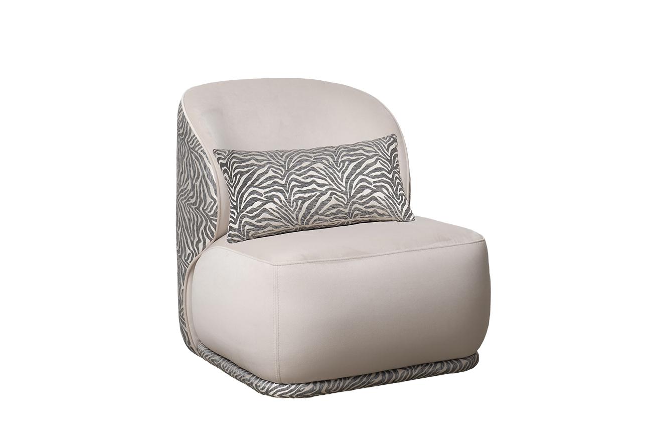 description-full - Кресло Капри Базовая(Capri Basic) без подлокотников смотрится весьма необычно за счет округлой формы и отсутствия углов. Однако именно это делает его столь привлекательным и удобным. За мягкость и комфортность посадки отвечают наполнитель из пенополиуретана и обивка из велюра, а поддержку спины обеспечивает декоративная подушка с оригинальным принтом. Стильное кресло с принтом будет эффектным дополнением дивану в аналогичном стиле, станет уютным местом для отдыха в спальне, холле, на закрытой веранде, в лаунж-зоне. Собственное производство позволяет компании Garda Decor изготовить данное бежевое кресло в любых других вариантах обивки под заказ. Кресло в стандартном исполнении: обивка в тканях коллекции Garda Decor - велюр Колтон(Colton)002 (основная) + жаккард Ана-Беж(Ana-Beg) (спинка+ декоративная подушка). Габариты изделия: ширина-800мм, глубина- 930мм, высота- 820мм; габириты сиденья: ширина-800мм,глубина-640мм,высота-430мм