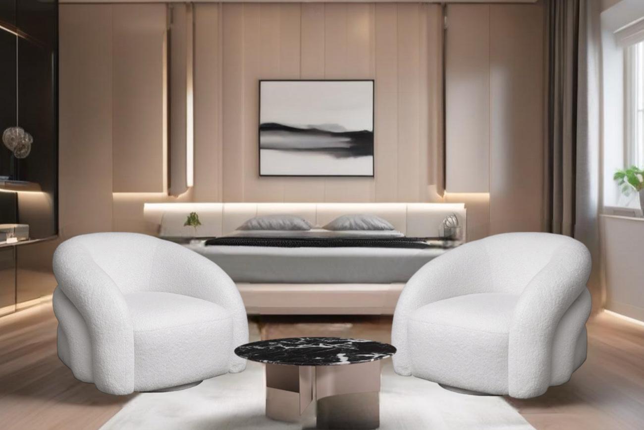 Мебель Garda Decor Кресло Monblan поворотное букле белое Hush000 93*90*70см арт. MONBLAN-K-HUSH000