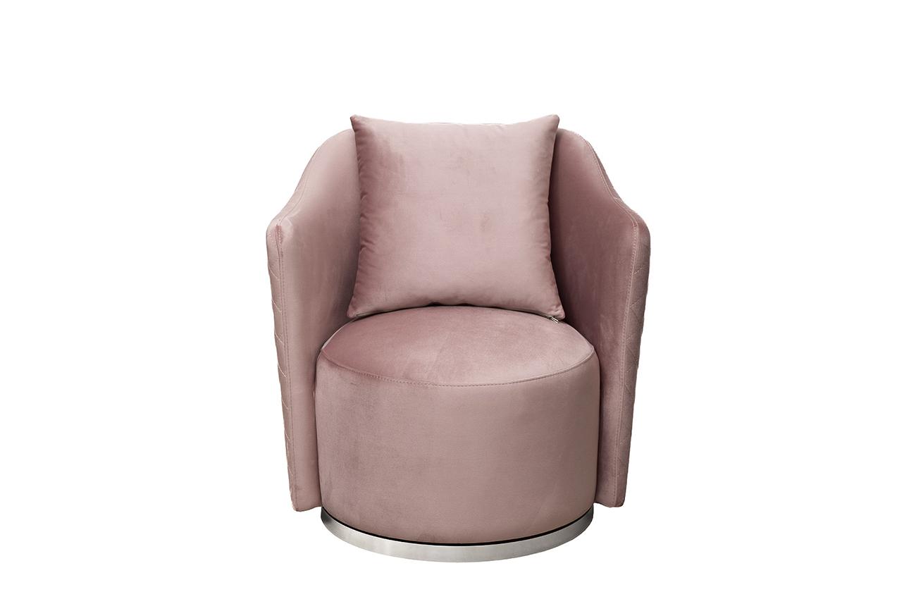 description-full - Дизайнерское розовое кресло Верона(Verona) станет эффектным дополнением современного интерьера, где ключевую роль играет эксклюзивность и эстетика мебели. Благодаря механизму вращения сидение легко крутится вокруг своей оси, что удобно для отдыха и работы. Лаконичный дизайн, мягкая спинка с удобными подлокотниками и подушка делают это кресло прекрасным выбором для гостиной, спальни, кабинета, детской комнаты. Купить вращающееся кресло можно для интерьеров в стиле ар-деко, неоклассика, контемпорари. Размер сиденья Г58*Ш60*В40см. Диаметр металлической части основания - 58см, высота - 3,5см. В стандартном исполнении: обивка - ткань велюр из коллекции тканей Garda Decor Колтон(Colton)007, основание - полированная нержавеющая сталь- цвет хром.
