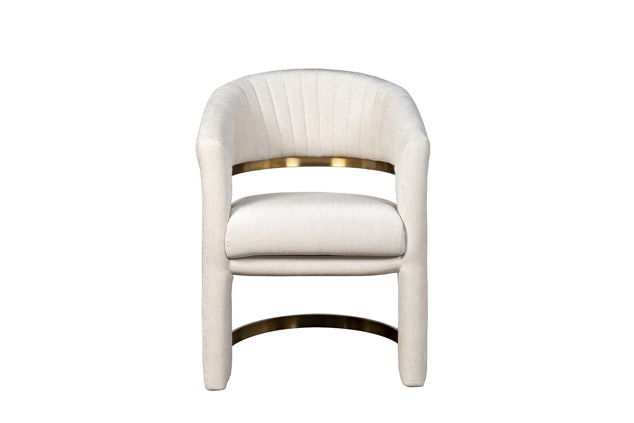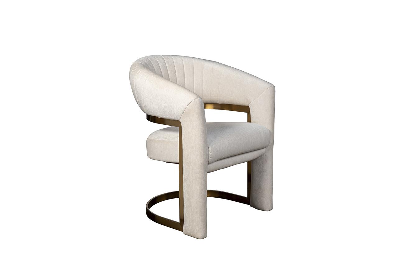 description-full - Элегантный стул с акцентной латунной вставкой — воплощение утончённого вкуса и интерьерной гармонии. Мягкая обивка цвета шампанского подчёркивает изогнутые формы, вдохновлённые ар-деко, а округлая спинка с деликатной простёжкой создаёт обеспечивает эстетический и функциональный комфорт. Этот дизайнерский стул идеально подойдёт для обеденной или гостиной зоны в стиле new art deco и contemporary luxury. Стул с изысканной велюровой обивкой, который объединяет эстетику, тактильность и актуальный тренд на скульптурность в мебели.