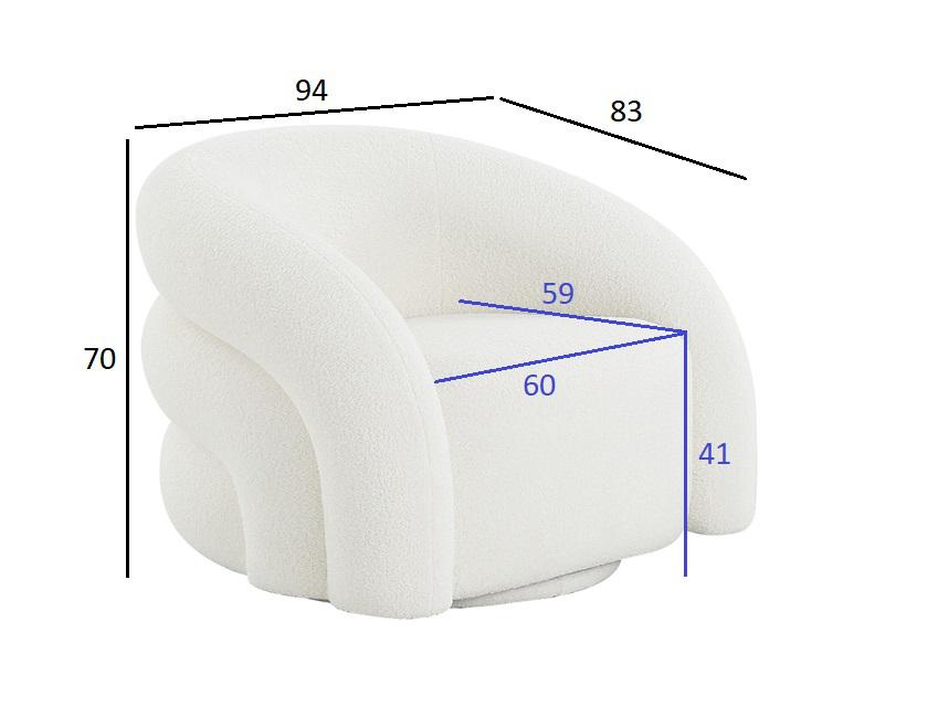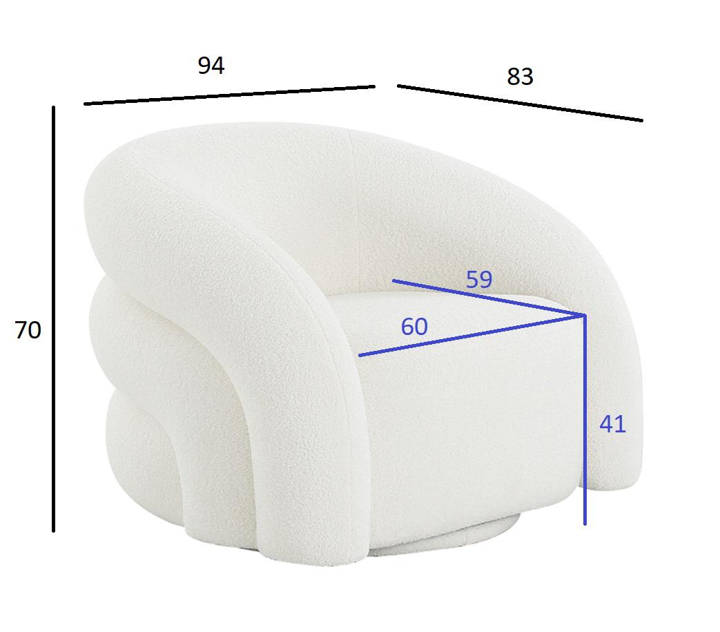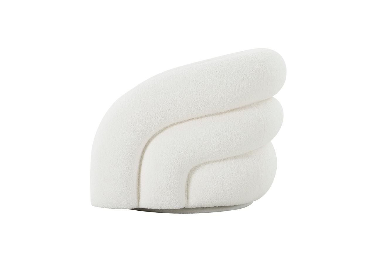 description-full - Удобное белое кресло футуристической формы выполнено из мягкой обивки, по фактуре напоминающей овечью шкуру. Оригинальные мягкие выпуклые объемы внешней части несомненно будут притягивать взор и позволят в полной мере воспользоваться преимуществами этого кресла как дизайнерского объекта, декоративного на все 360 градусов. Габариты сиденья: 60*59см, высота от пола 41см, высота спинки 30см. Сочетается с трехместным диваном ZW-22024.