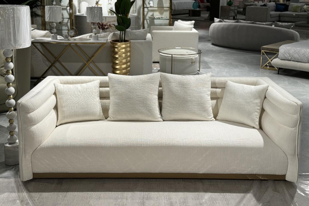 description-full - Диван трехместный Толедо(Toledo) без механизма трансформации.Диван на фото выполнен в ткани из коллекции Garda Decor- рогожка Нортон-СВЕТЛО/БЕЖЕВЫЙ((Norton-SVBEG).В комплект дивана входят декоративные подушки 48*48см- 2шт, декоративные подушки 56*56см с клапаном-2шт. Габариты дивана: ширина-232,5см, глубина- 97см, высота-77см. Глубина посадочного места- 79см, высота сиденья- 42см. Опоры-металл (латунь)-35мм, латунный цоколь.