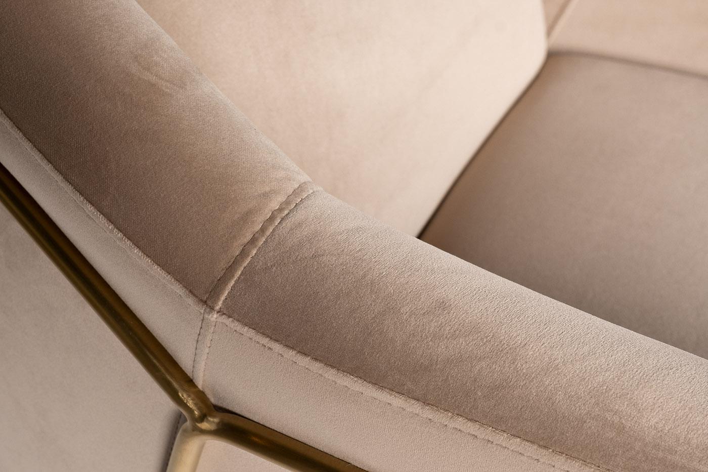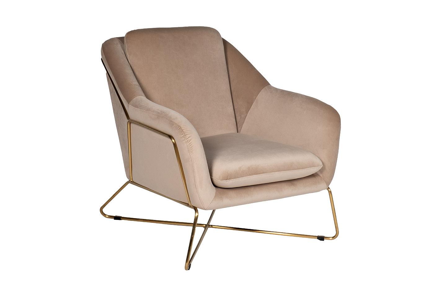 description-full - Эксклюзивное велюровое кресло в стиле "новой волны" 60-х с изящным металлическим каркасом имеет все шансы стать вашим самым удачным приобретением и любимым местом для отдыха. Невероятно комфортное благодаря мягкой спинке и подлокотникам. За эстетическую составляющую отвечает велюр с богатой текстурой и тонкие ножки-опоры из нержавеющей стали цвета матового золота. Если ищите современное кресло, которое будет одинаково эффектно смотреться в жилых и бизнес-интерьерах, это тот самый случай. Его легко комплектовать с другой мебелью в стиле ар-деко и вписывать в окружающее пространство. Купить кресло с мягкими подлокотниками такой модели можно в других вариантах цвета. Наполнитель пенополиуретан. Размер сиденья: Д75*Ш78*В41см.