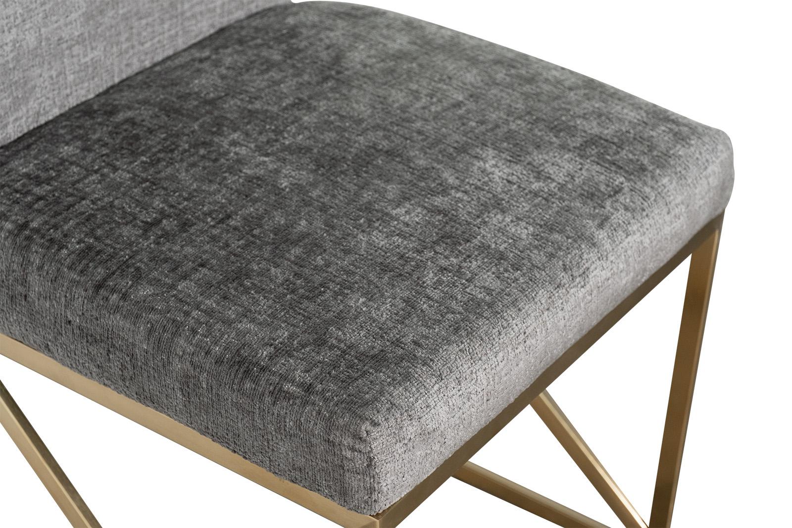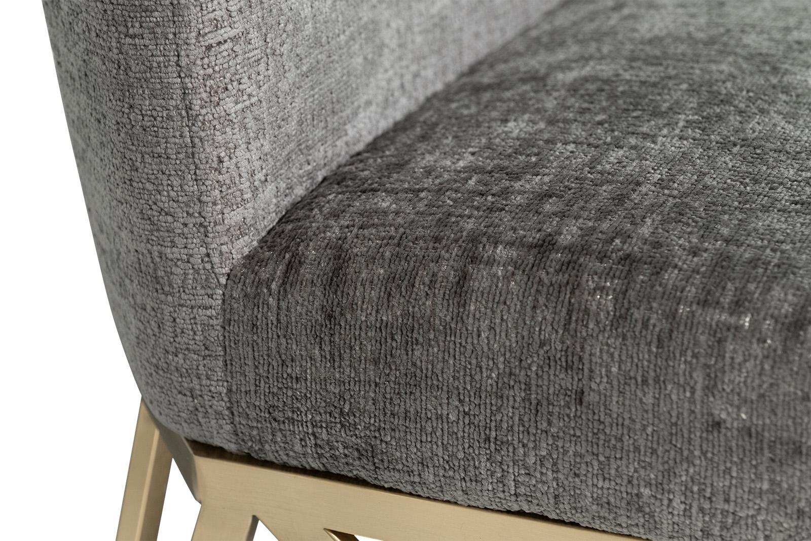 description-full - Стул в сером шенилле с золотистым каркасом — воплощение контрастной элегантности, где строгость встречается с роскошью. Высокая спинка с лаконичными линиями обрамляет фигуру, а мягкая обивка из шенилла серого оттенка придаёт тактильную глубину — фактура чуть бархатистая, с едва заметным переливом, будто сотканная из дневного света. Каркас из металла с позолотой не просто опора — это художественный акцент: тонкие ножки с геометрическим изгибом создают ощущение парения, добавляя пространству лёгкости и блеска. Идеален для столовой или кабинета в стиле ар-деко или современного фьюжна — там, где важна дизайнерская мебель с характером. Это не просто предмет интерьера, это мебель, способная превратить обеденную зону в место, где каждый момент становится церемонией. Подойдёт тем, кто ценит функциональный интерьер без потери театральности. Габариты сиденья: ширина - 49см, глубина - 56см, высота от пола - 47см. Идеально сочетается с обеденным столом 30F-14780.