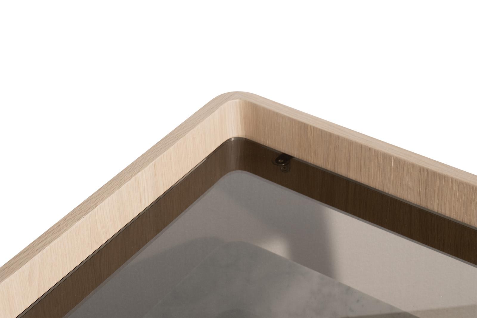 description-full - Светлая тумбочка с мраморной столешницей — тонкий баланс между уютом и роскошью. Её корпус из МДФ с текстурой светлого дерева обрамляет полку из прозрачного стекла — лёгкую, будто парящую над основанием. Столешница из натурального мрамора с нежными серыми прожилками уникальна — как отпечаток времени. Ящик спрятан за рельефной панелью, открывается без ручек — плавно, почти бесшумно. Идеальна для спальни или гостиной в стиле ар-деко или фьюжн — где светлая тумбочка с ящиком становится акцентом пространства. Это дизайнерская тумбочка с натуральным мрамором — сдержанная, но выразительная, элегантная без пафоса.