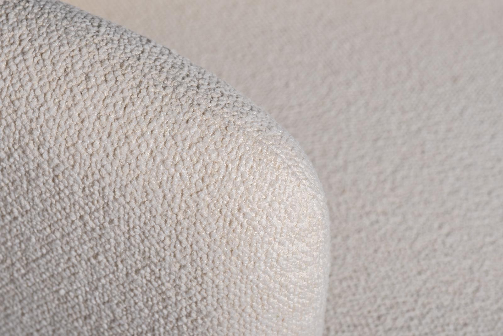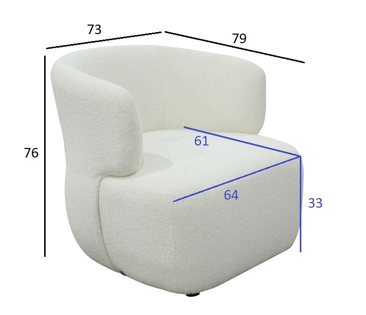 description-full - Белое кресло Тироло (Tirolo) — воплощение мягкого минимализма и тактильной роскоши. Обивка из букле создаёт эффект воздушного объёма и живой фактуры, а округлые линии формируют уютную, почти кокон-форму, в которую хочется погружаться после долгого дня. Компактное, но выразительное, это кресло идеально для камерных гостиных, спален и зон отдыха, где важны визуальная чистота и ощущение комфорта. Белое кресло из букле легко становится интерьерным акцентом, добавляя пространству свет, спокойствие и современную элегантность. Обивка - белое букле, опоры - каучуковое дерево черного цвета. Габариты сиденья: ширина - 64см, глубина - 61см, высота от пола - 33см.