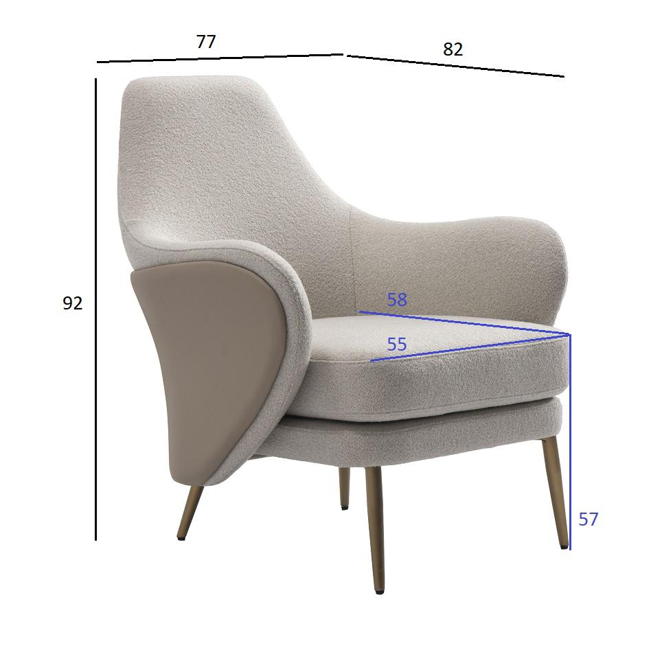description-full - Кресло Сельвино (Selvino) из искусственного меха — эффектное сочетание уюта и графичной элегантности. Мягкая ворсистая обивка словно окутывает теплом, приглашая к неспешному отдыху, а вставки из экокожи подчёркивают скульптурную форму и добавляют образу статусности. Комфорт посадки обеспечивается за счёт продуманной формы сиденья и плавной спинки, что делает кресло Selvino идеальным для гостиной, спальни или зоны чтения. Этот дизайнерский акцент легко интегрируется в современные обстановки, придавая ощущение продуманной роскоши и тактильного удовольствия. Обивка - светлый искусственный мех с фактурой овчины, спинка декорирована бежевой экокожей. Ножки - нерж.сталь, цвет матовое золото. Габариты сиденья: ширина - 55см, глубина - 58см, высота от пола - 57см.