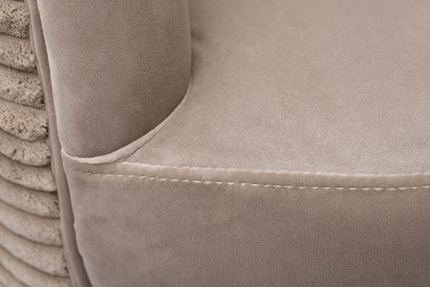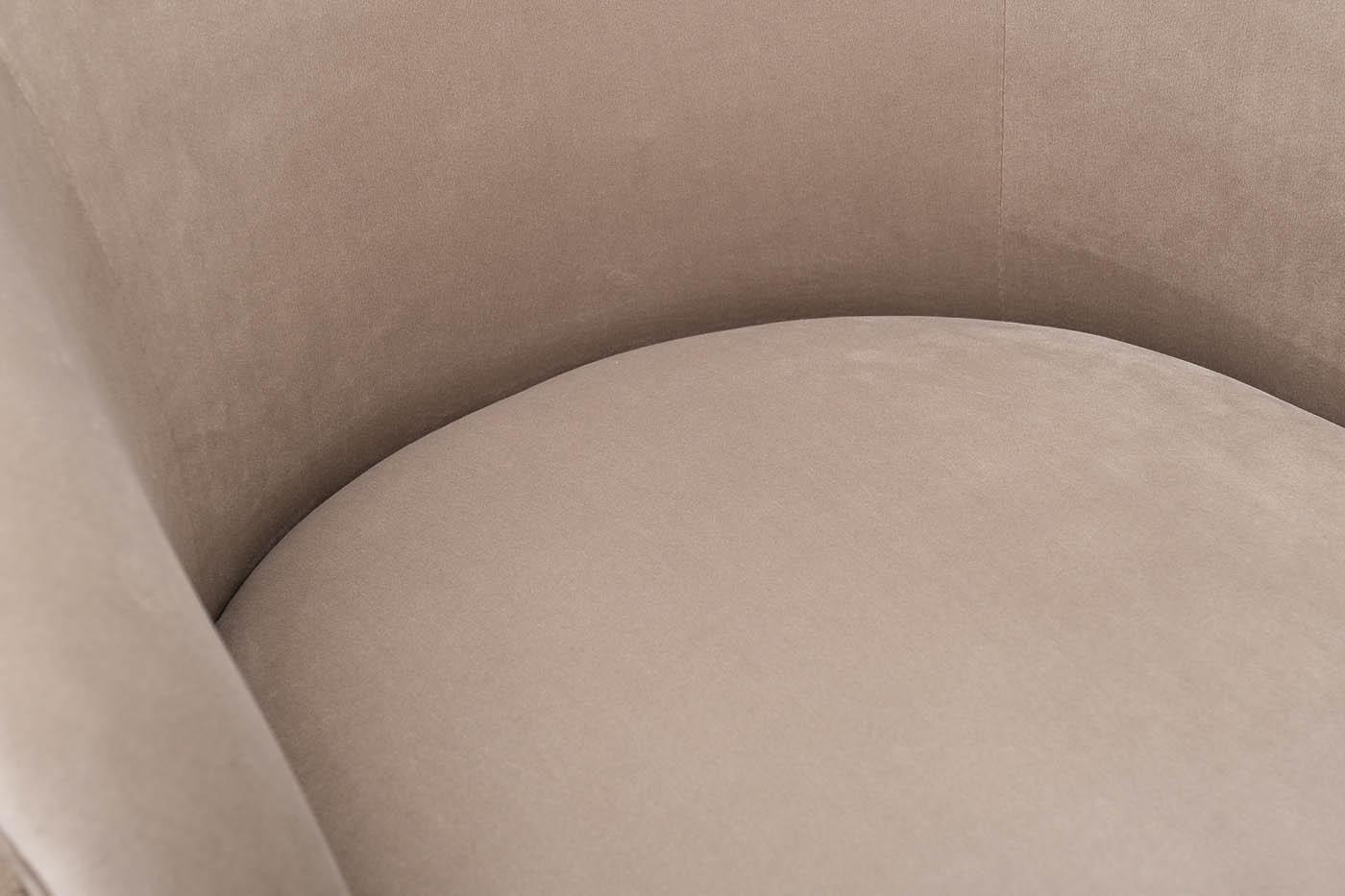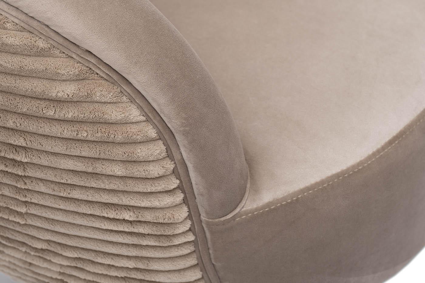 description-full - Комфортное велюровое кресло эффектно смотрится в современном интерьере ар-деко и является идеальным для отдыха. Оно найдет себе место в гостиной, спальне, кабинете, лаунж-зоне – в любом стильном пространстве. За счет мягкой обтекаемой спинки, плавно переходящей в подлокотники, дутое кресло обеспечивает максимальный комфорт и эффект «утопания». Каркас из дерева обеспечивает модели надежность и устойчивость, а позолоченные ножки из металла в стиле 50-х добавляют изящности. Бежевое кресло с обивкой из мягкого дорогого велюра составит стильную компанию дивану в аналогичной стилистике. Габариты сиденья: ширина - 51см, глубина - 51см, высота сиденья - 46см