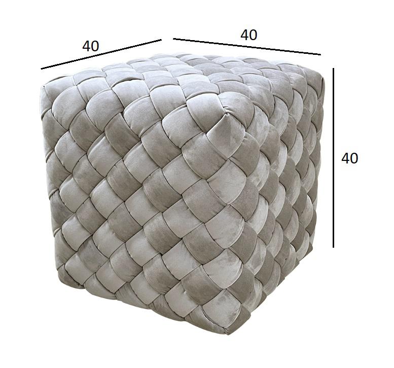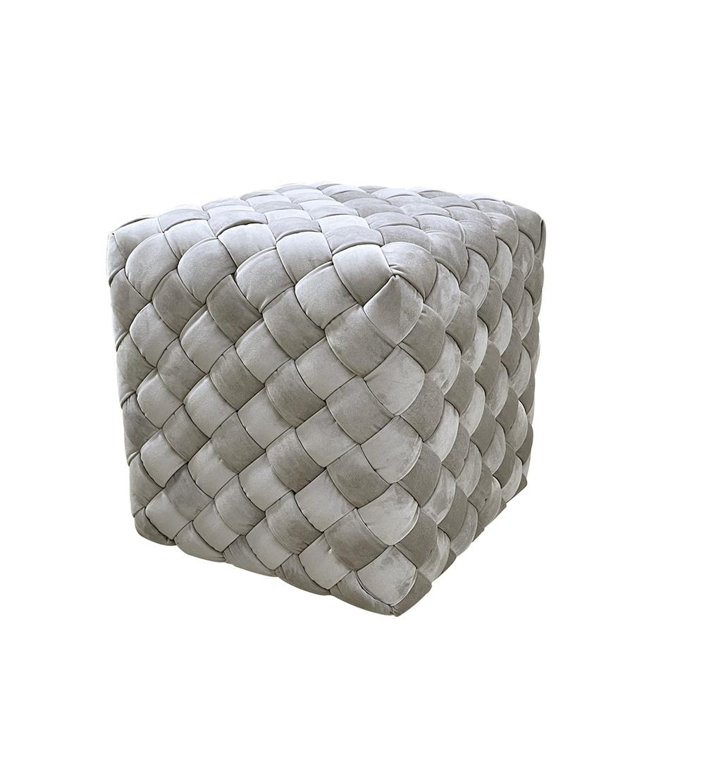 description-full - Необычный пуфик с интересной отделкой сиденья из плетеных лент ткани с наполнителем ППУ внутри в ромбическом узоре. Нейтральный серо-бежевый цвет велюра и компактность дают возможность вписать такой предмет мебели в разнообразные варианты интерьера.