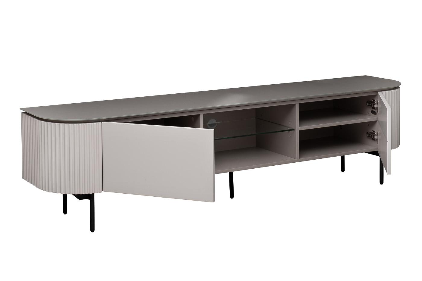 description-full - Дизайнерская тумба под телевизор Скала (Scala) светлого серо-бежевого оттенка из материалов премиального качества украсит собой любую современную гостиную, спальню, кабинет. Функционал этой модели гораздо шире, чем просто хранение вещей. Она выполняет роль эффектного акцента в интерьере, поверхность которого подходит для установки современных телевизоров. Тумба под телевизор органично вписывается в современные интерьеры жилых квартир и рабочих кабинетов. С ней можно играть на контрастах или оформлять пространство в монохроме. Глянец тумбы актуально вписывается в современные интерьерные решения. Предлагаем дополнить ее другой мебелью из серии Скала (Scala) – комодом 77IP-CH2072 и тумбочкой 77IP-NS2072, что позволит организовать пространство в едином стиле.
