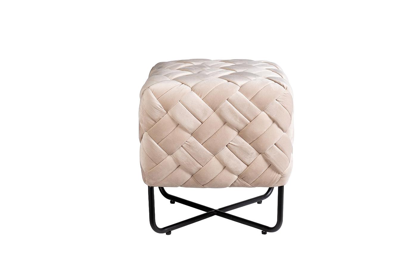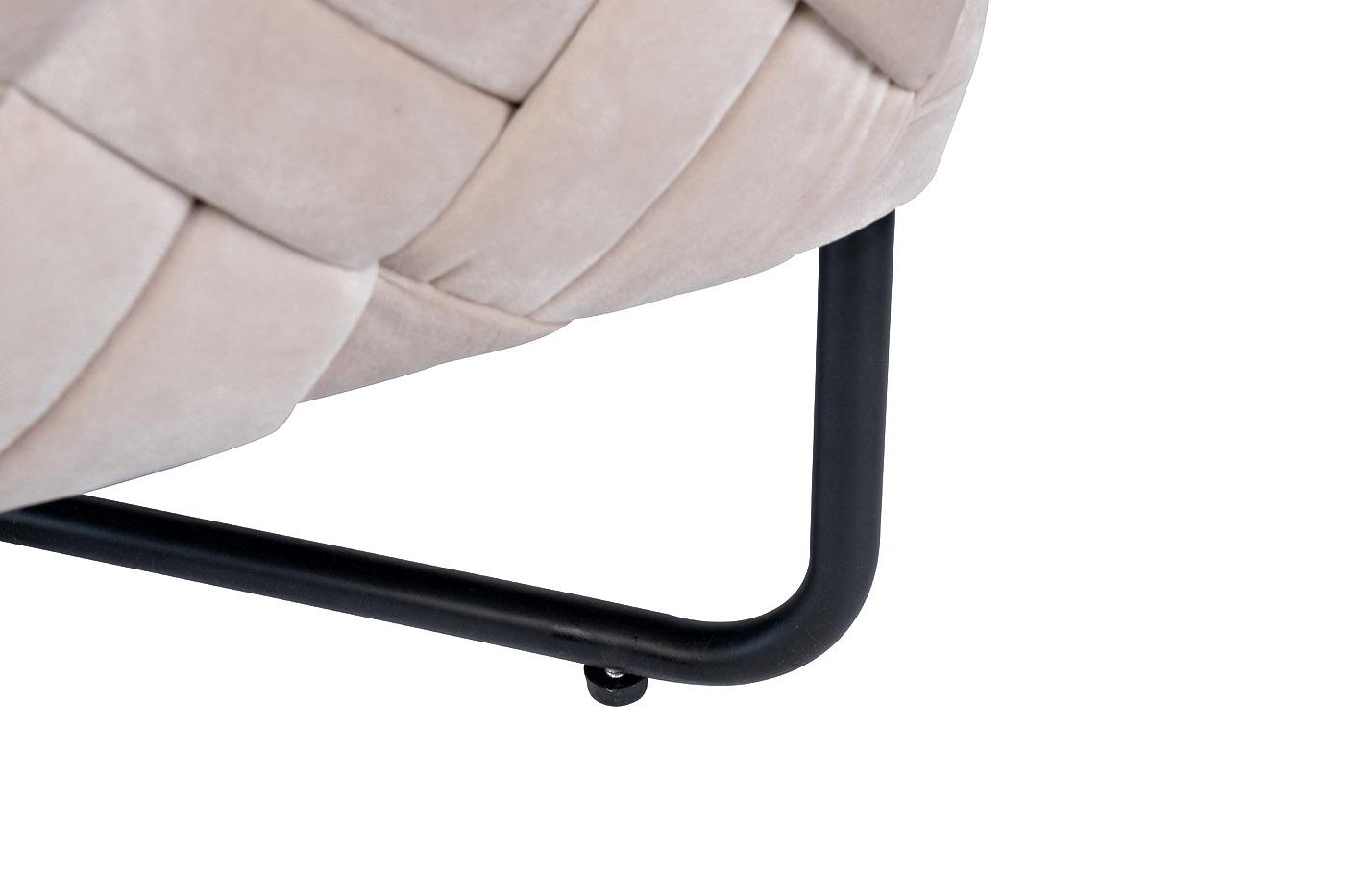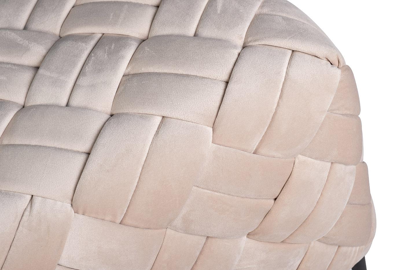 description-full - Потрясающая плетеная банкетка выглядит восхитительно благодаря нежному блеску светлого велюра, из которого выполнена обивка. Переплетения благородной ткани помогают создавать удивительный лоск, подчеркивающий элегантность изделия. Велюром обтянута основа банкетки из натурального дерева, которая размещается на прочной металлической основе из тонкого профиля черного цвета. Мягкая, удобная и небольшая бежевая банкетка прекрасно впишется в современный интерьер, добавит ему комфорта и эстетичности, потому что именно с этим ассоциируется эта мягкая и роскошная ткань.