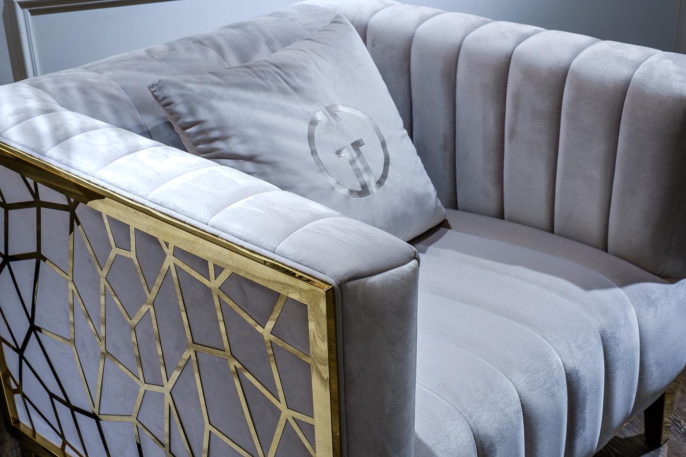 description-full - Роскошное прямоугольное креслоиз серии Basel, в котором воплотились лучшие черты стиля ар-деко. Без ложной скромности и пафоса. Элегантное и максимально комфортное. Невысокая спинка, которая составляет единое целое с подлокотниками, обеспечивает удобную посадку и поддержку спине. Это эксклюзивное кресло имеет свою изюминку – оригинальный каркас из нержавеющей стали золотистого цвета. Декоративная подушка с вышивкой является красивым дополнением, которое делает дизайнерское кресло в интерьере чуть ли не главным украшением. Предлагаем купить данную модель в сочетании с диваном из этой же коллекции. Габариты сиденья: ширина 62см, глубина 61см, высота от пола 47см. В комплект входит 1 декоративная подушка 50*50см с логотипом GD (GARDA DECOR). Сочетается с двухместными диванами 102AN-DIV-8682-SER.