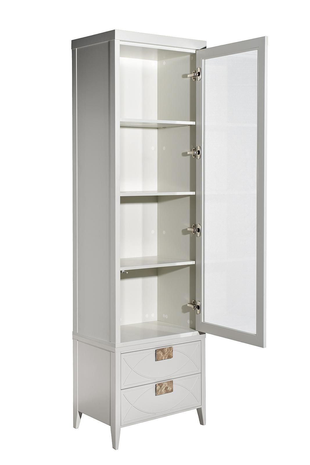 Элегантный шкаф-витрина со стеклянным фасадом в бежевой отделке объединяет лёгкость экспозиции и практичность хранения. Строгая архитектура корпуса смягчена благородным оттенком и деликатной фрезеровкой фасадов, а прозрачная витринная часть позволяет эффе...