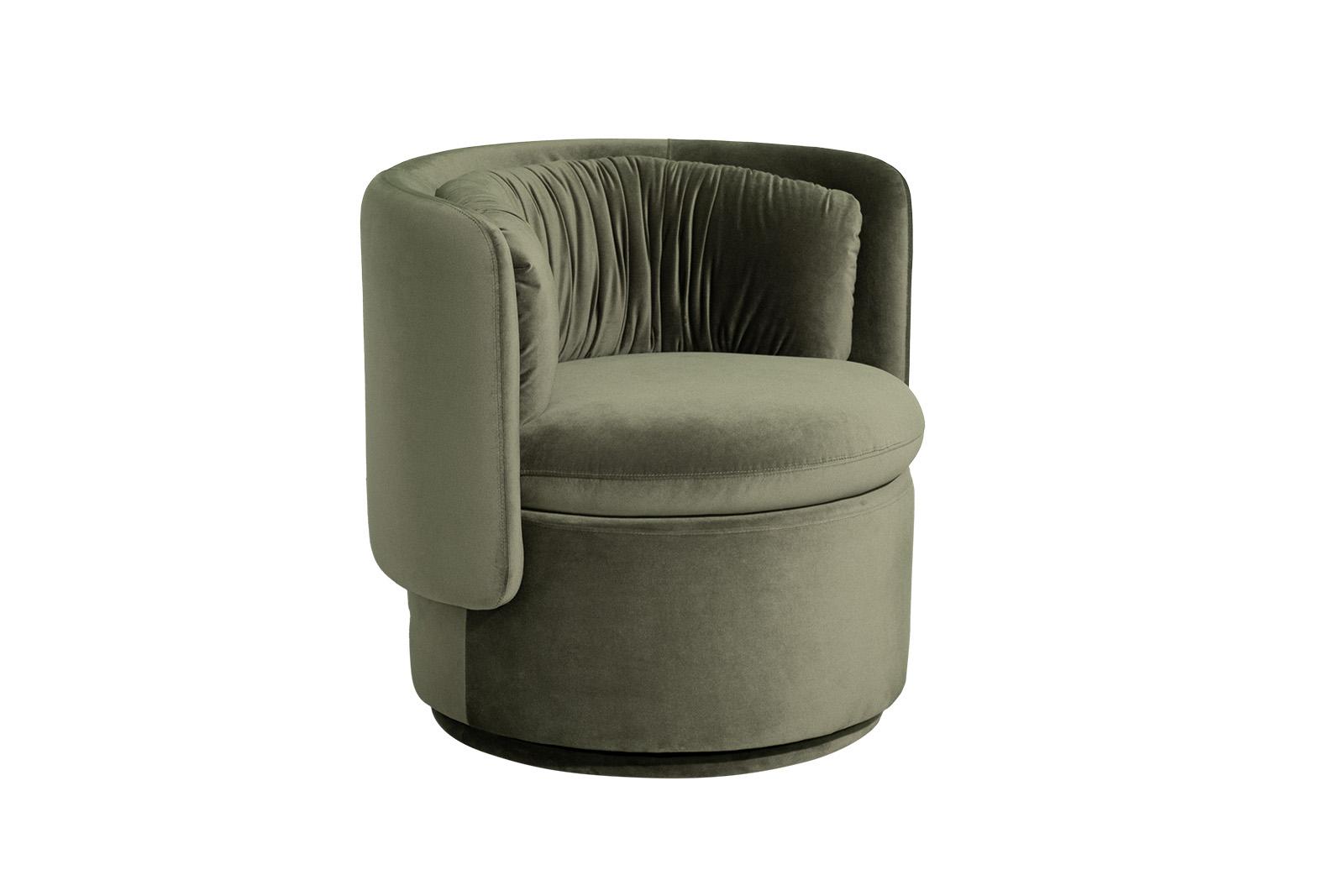Поворотное кресло в насыщенном зелёном велюре — воплощение утончённого комфорта и дизайнерской смелости. Его объёмная форма с плавными изгибами обволакивает тело, а глубокая посадка и радиальная спинка создают ощущение мягкого объятия. Велюр с бархатистым...