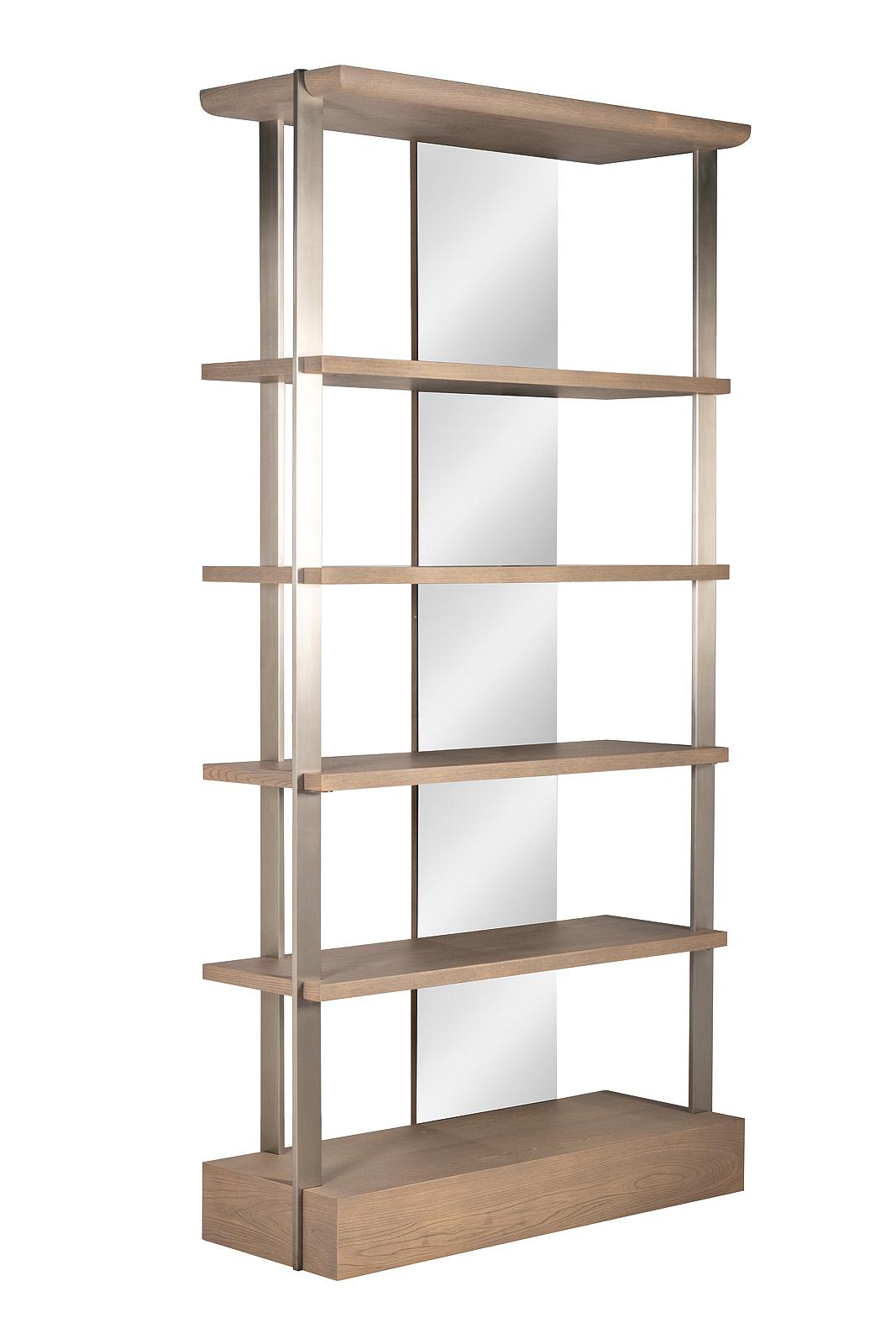 description-full - Дизайнерский стеллаж из коллекции Cмут (Smooth), чьи четкие линии и гармоничное сочетание шпонированных полок с изящным металлическим каркасом создают ощущение легкости и открытости. Это воплощение современного минимализма, где функциональность возведена в ранг искусства. В актуальных интерьерах, где ценится визуальная свобода и возможность персонализации, этот стеллаж с полками выступает как ключевой элемент. Он идеально подходит для демонстрации коллекций книг, произведений искусства или стильных аксессуаров, позволяя при этом свету свободно проникать сквозь его структуру. Возможность использования открытых секций и наличие зеркальной задней панели добавляет глубины и динамики, делая стеллаж универсальным решением для гостиных, кабинетов или студий. В нашем ассортименте вы можете подобрать комод арт. 58DB-12286, консоль арт. 58DB-03125, журнальные столы арт. 58DB-13125, арт. 58DB-23125, ТВ-тумба арт. 58DB-22286, обеденный стол арт. 58DB-33125 в стиле Smooth.