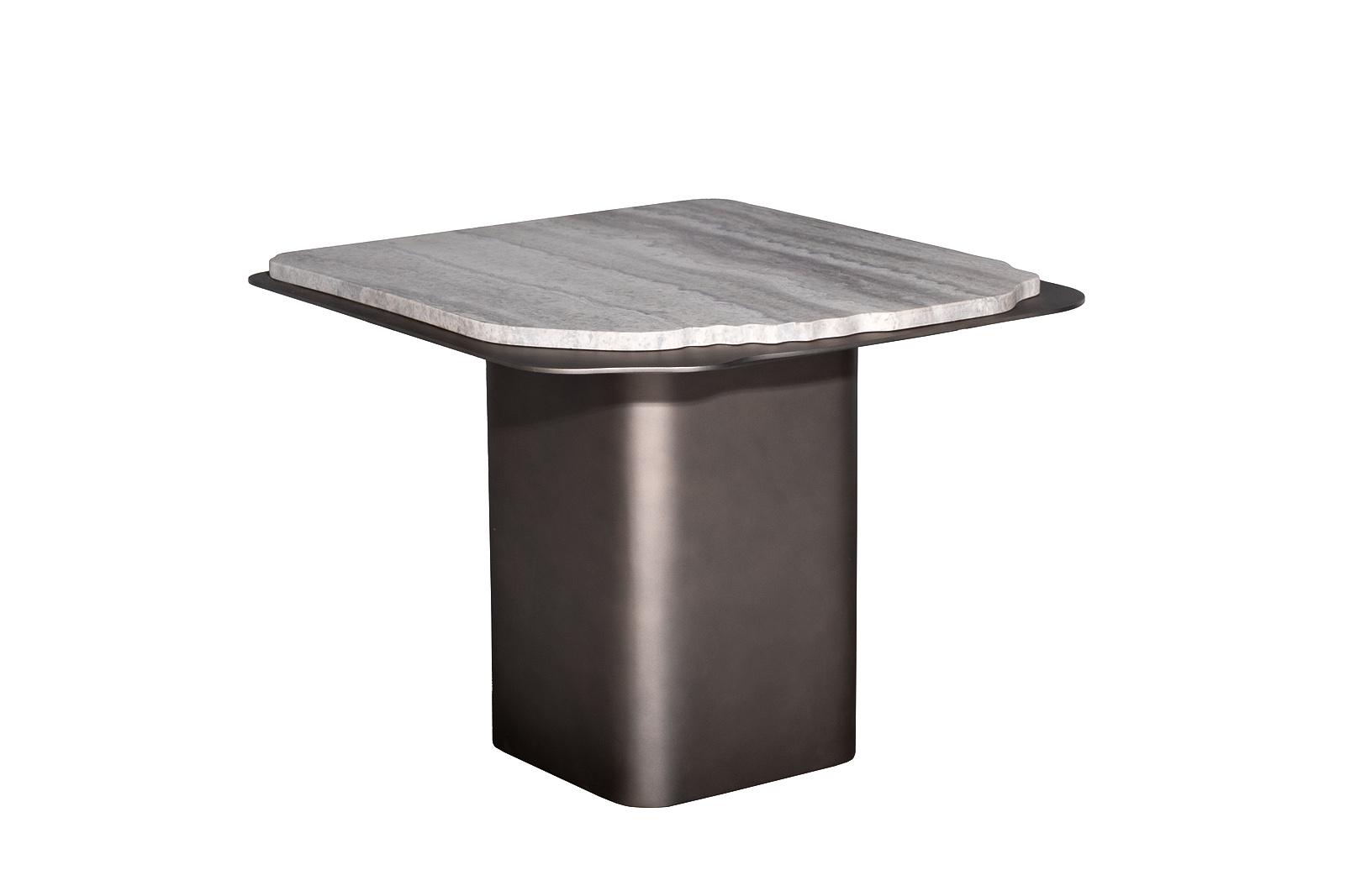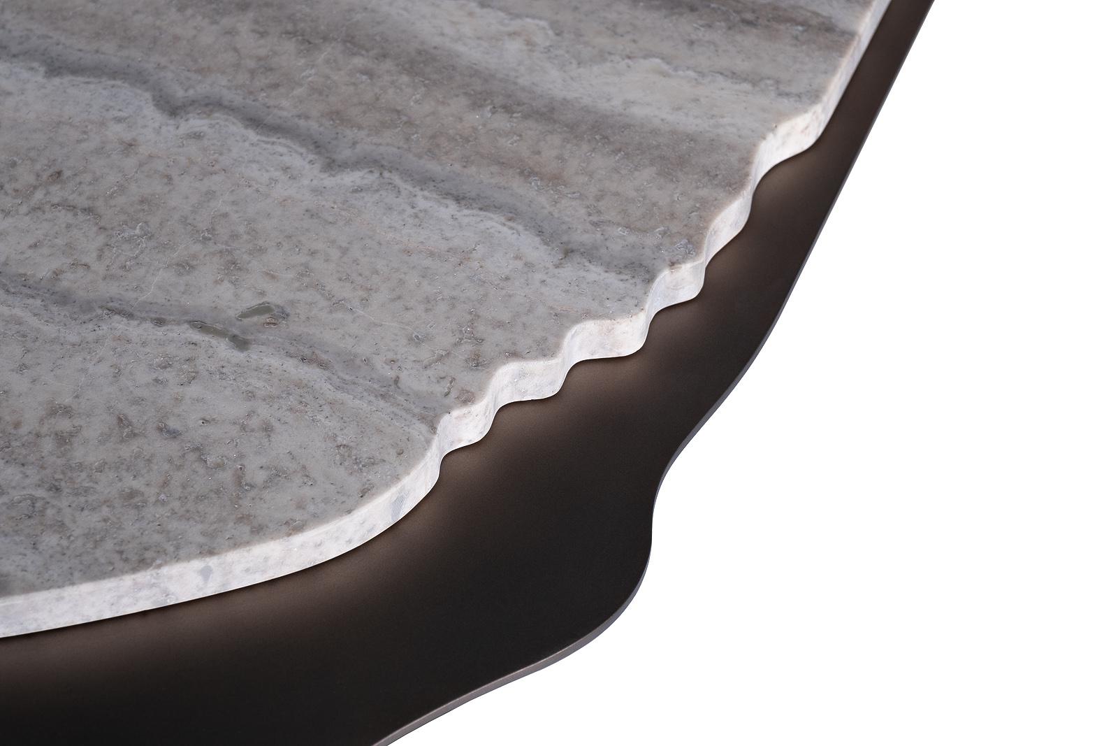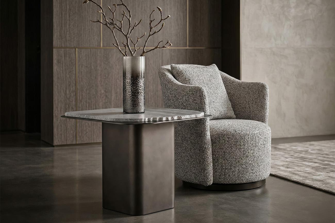 description-full - Столик журнальный Травертин (Travertine) — выразительный акцент современной гостиной, в котором природная эстетика сочетается с архитектурной формой. Этот журнальный столик из травертина привлекает внимание столешницей из натурального камня с естественным рисунком и мягко обработанным краем. Металлическое основание придаёт конструкции устойчивость и подчёркивает современный характер дизайна. Дизайнерский журнальный стол Travertine органично вписывается в интерьеры в стиле современная роскошь (modern luxury), минимализм и современная классика, добавляя пространству глубину, статус и визуальное равновесие.