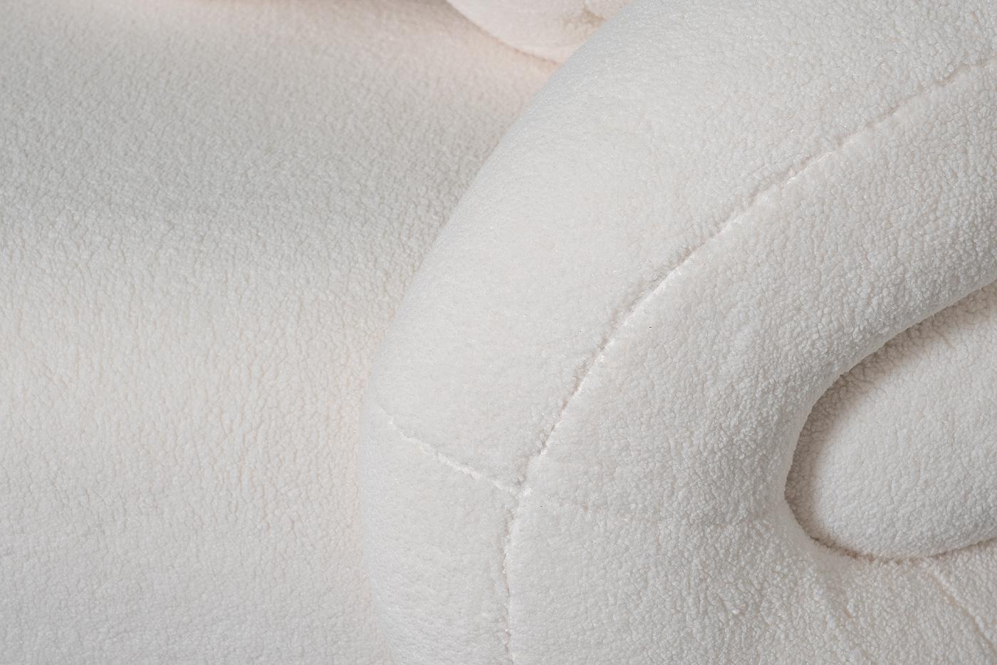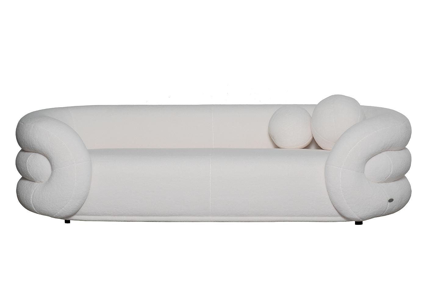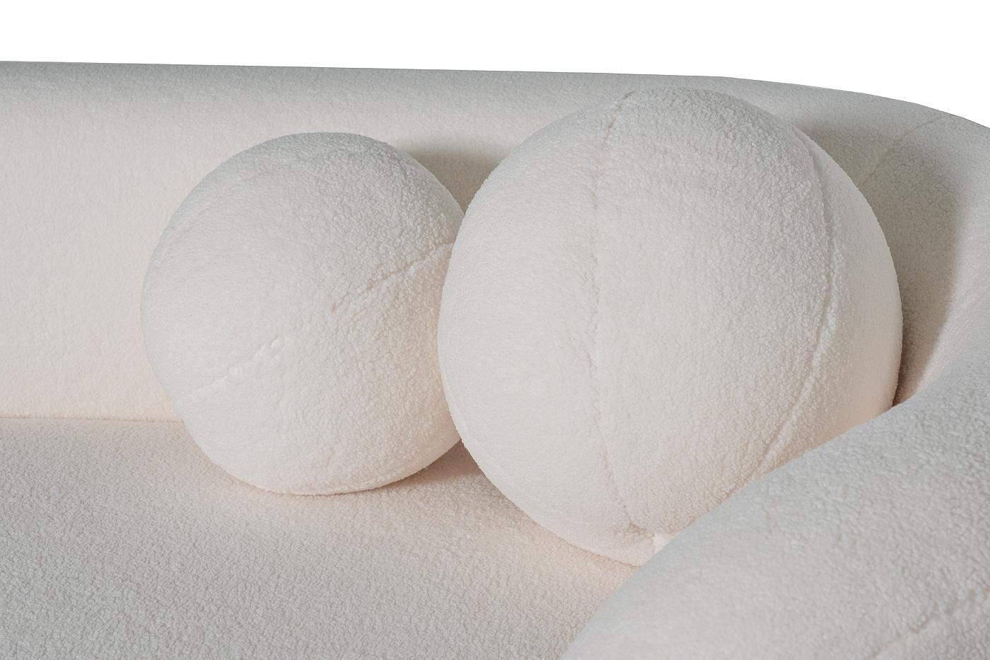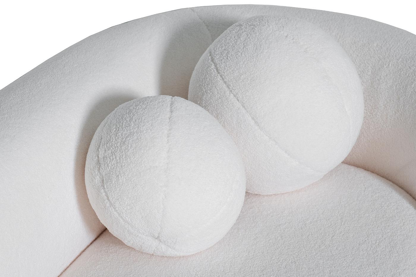 Уютный белый диван футуристической формы выполнен из мягкой обивки, по фактуре напоминающей овечью шкуру. Оригинальные мягкие выпуклые объемы внешней части и шаровидные декоративные подушки несомненно будут притягивать взор и позволят в полной мере воспол...