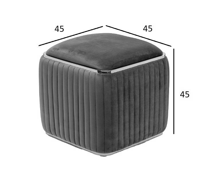 description-full - Велюровый пуф из серии Гларус (Glarus) - элегантность формы, сочетание гладкого и волнистого велюра, металлической отделки. Велюровый пуф с эффектным декором из «золотого» металла украсит собой интерьер гостиной, холла, спальни, прихожей. Он станет стильной компанией дивану и креслам из серии Гларус (Glarus). Компактный квадратный пуф полностью отвечает концепции стиля ар-деко – обивка из мягкого велюра, изысканный блеск отделки из нержавеющей стали, современная форма. Он занимает минимум места в помещении, но при этом приносит максимум пользы – добавляет уюта, выполняет функции дополнительного сидения, придает обстановке изысканности и шика. Вы можете купить серый пуф в сочетании с другой мебелью в стилистике современного ар-деко. Сочетается с двухместными диванами 102AN-DIV-1302-KOR, трехместными 102AN-DIV-1303-SER и креслами 102AN-KRES-1301-SER.