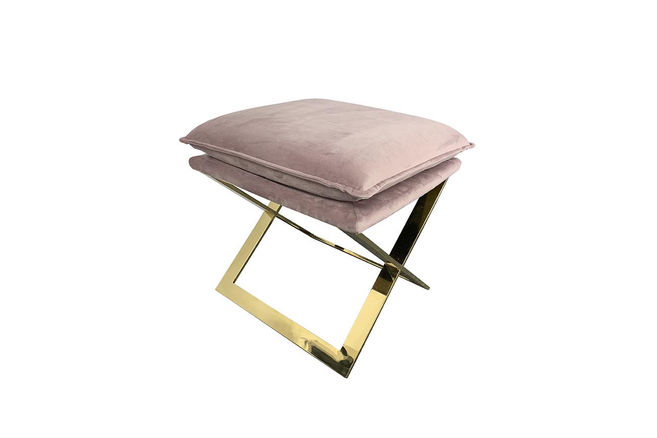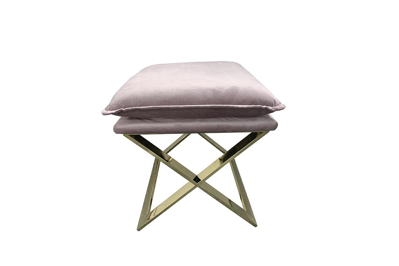 description-full - Изящная банкетка с мягким сиденьем-подушкой станет красивым и функциональным элементом обстановки вашего дома. Велюр нежнейшего розового оттенка прекрасно сочетается с опорой из полированной стали цвета золота. Банкетка послужит подставкой под ноги рядом с креслом или диваном, удобным низким сиденьем в прихожей или детской. Банкетка будет выглядеть нарядно и уместно в любой комнате и практически в любом современном интерьере - от классики до модерна, от ар-деко до стиля бохо-шик.