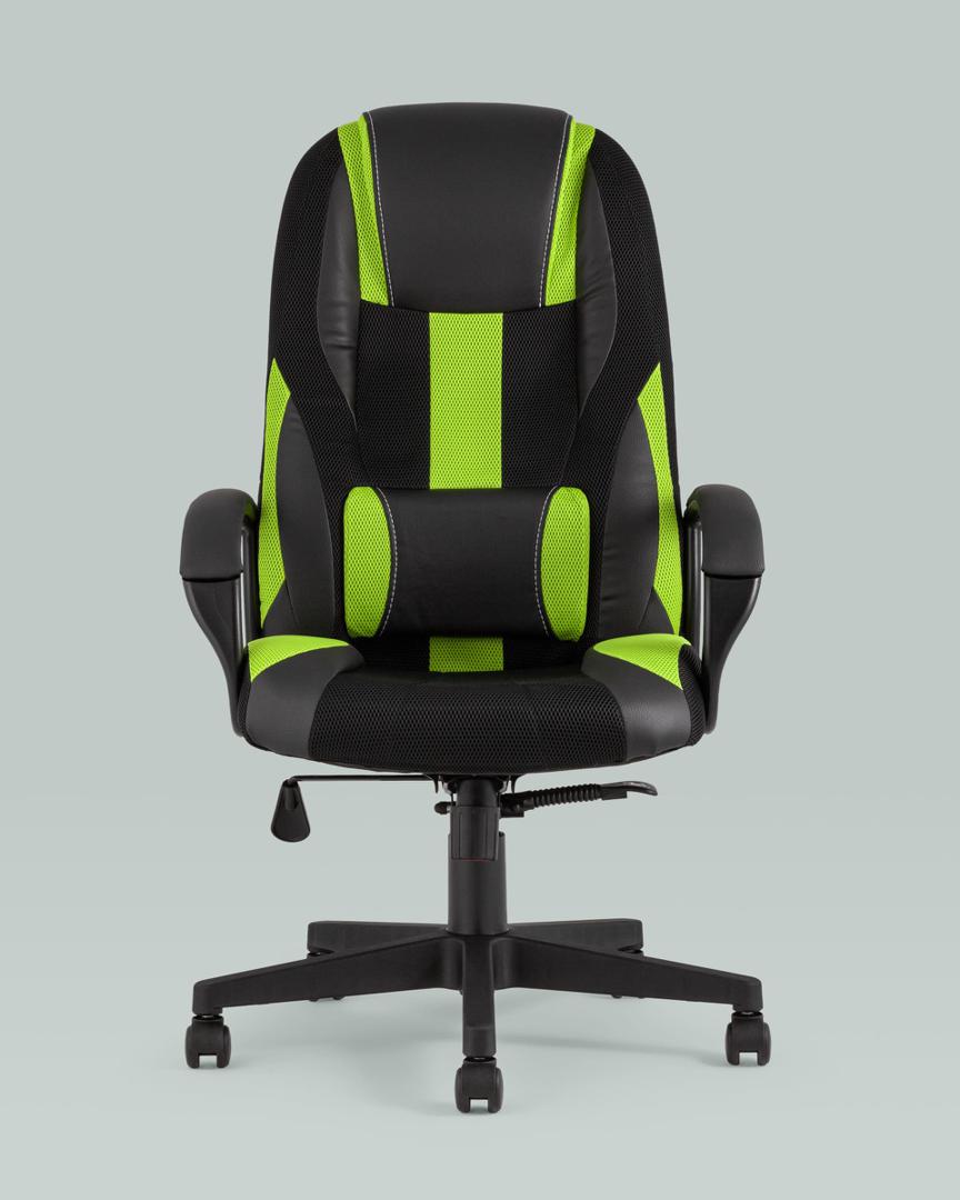 Геймерское кресло компьютерное игровое TopChairs ST-CYBER 9 GREEN ткань/экокожа черный/зеленый